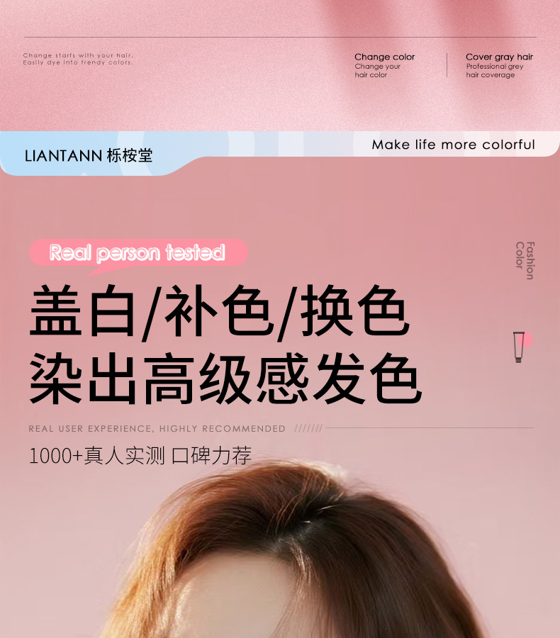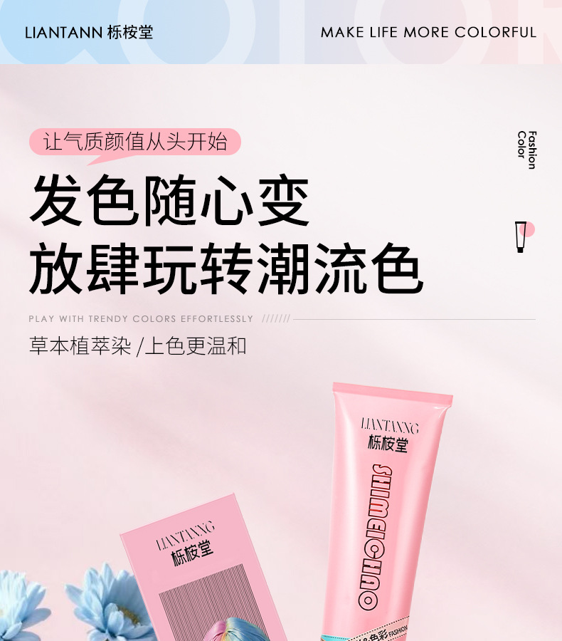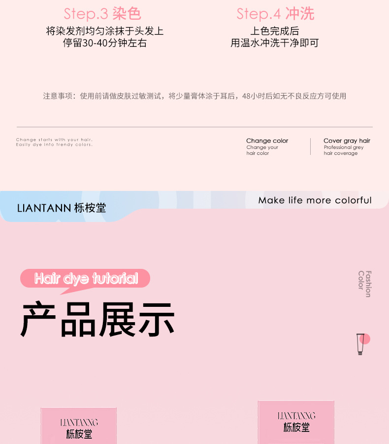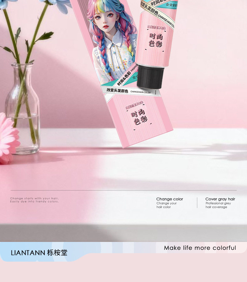 【天然植萃❗️免漂染发剂】染出高级感发色,轻松上色内外渗透发丝,长效锁色不褪色,温和不刺激,理发店专用染发膏女男盖白发多段色粉色灰色QQ