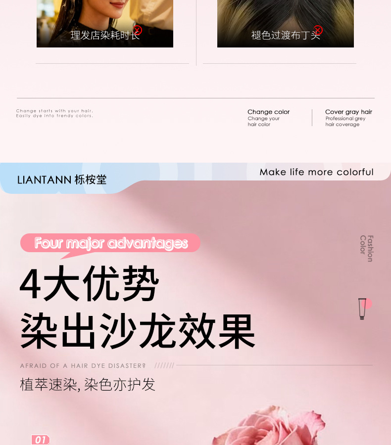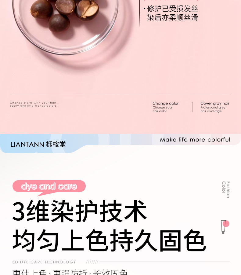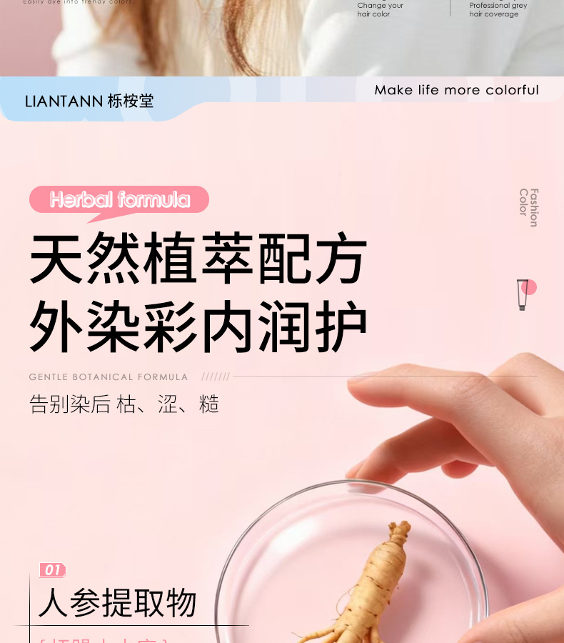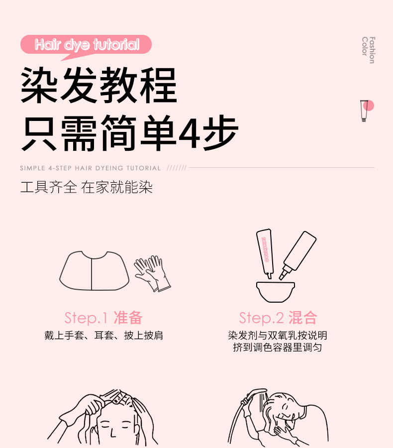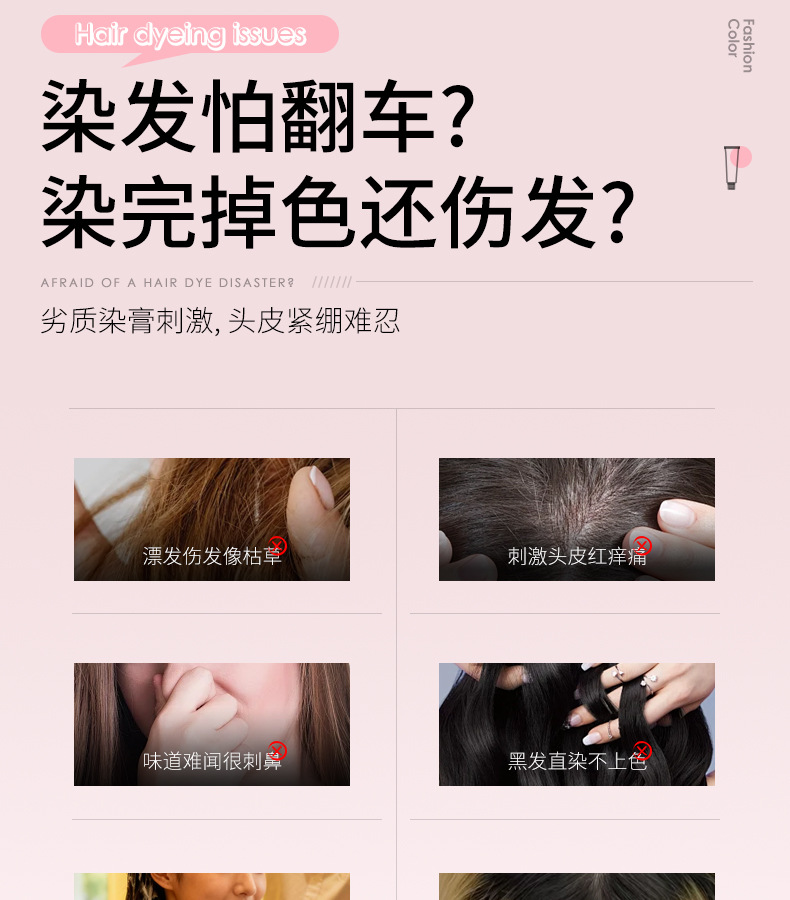 【天然植萃❗️免漂染发剂】染出高级感发色,轻松上色内外渗透发丝,长效锁色不褪色,温和不刺激,理发店专用染发膏女男盖白发多段色粉色灰色QQ