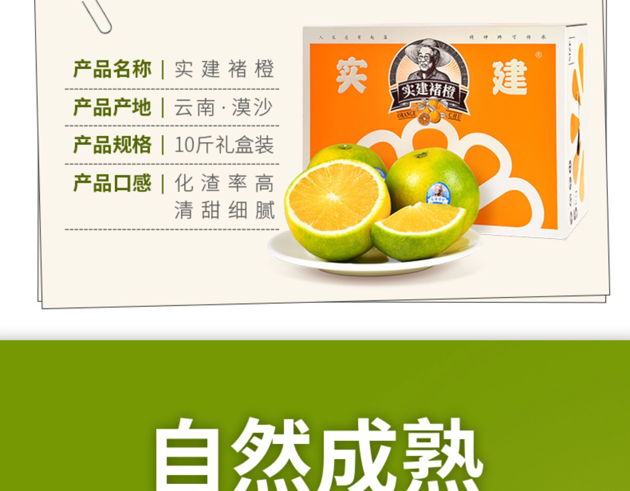2025实建褚橙 冰糖橙 M级/L级/XL级10斤礼盒装