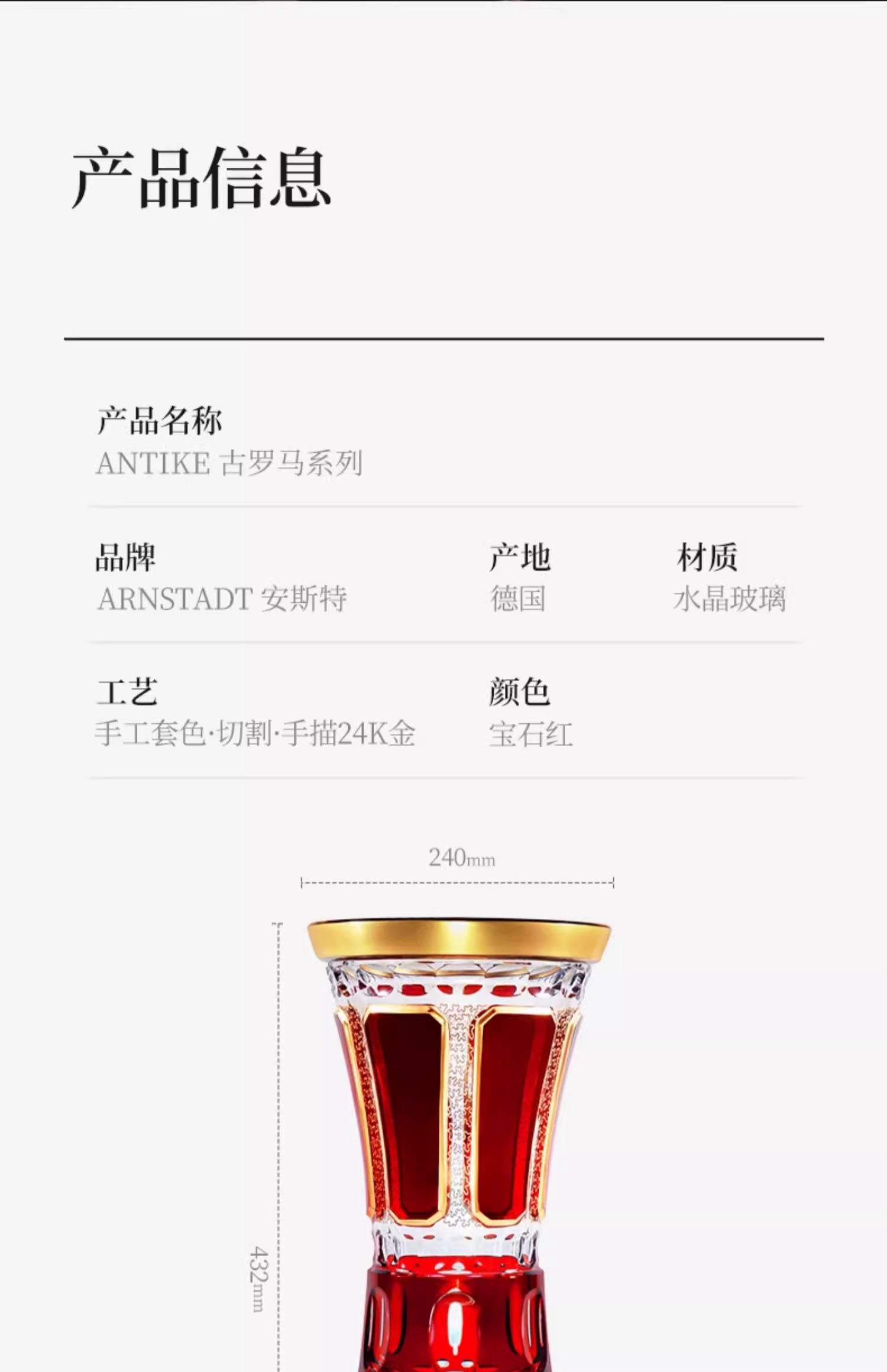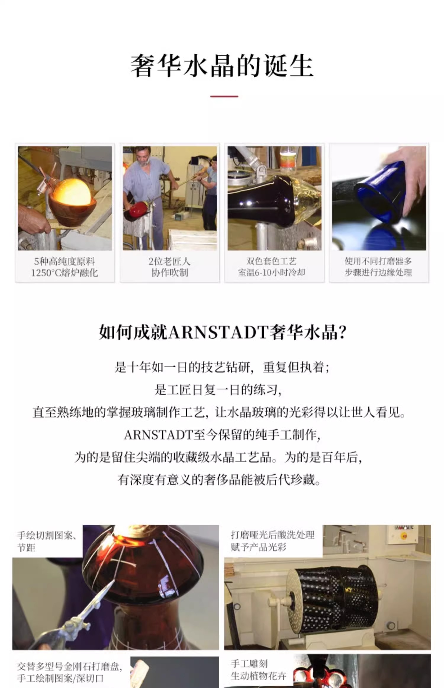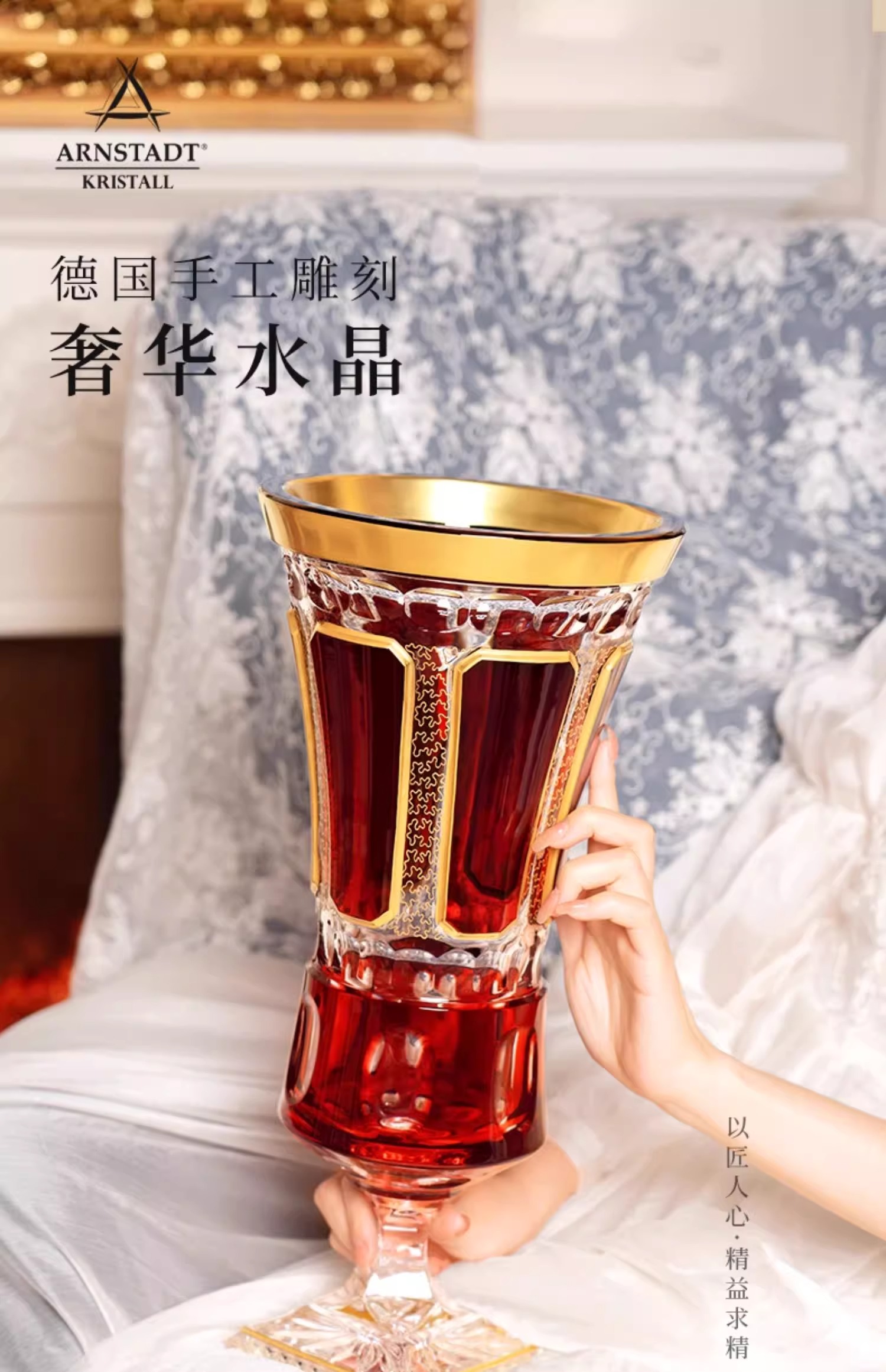 德国进口Arnstadt安斯特奢华玻璃花瓶摆件插花客厅高级感家用送礼安斯特43cm琥珀玛德琳花瓶34cm(仅样品,介意者慎拍,非质量不退不换