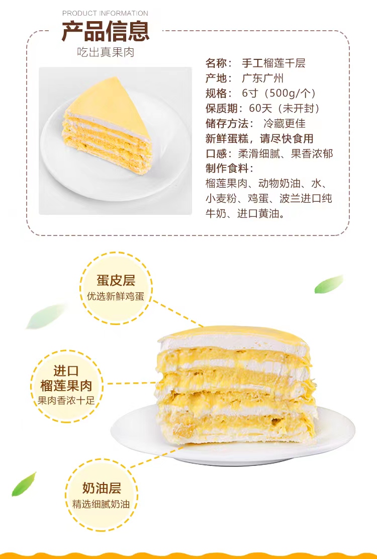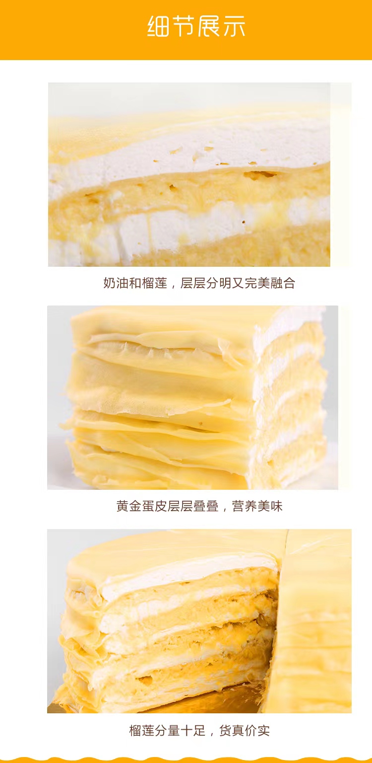 纯手工制作 | 猫山王榴莲千层蛋糕450g