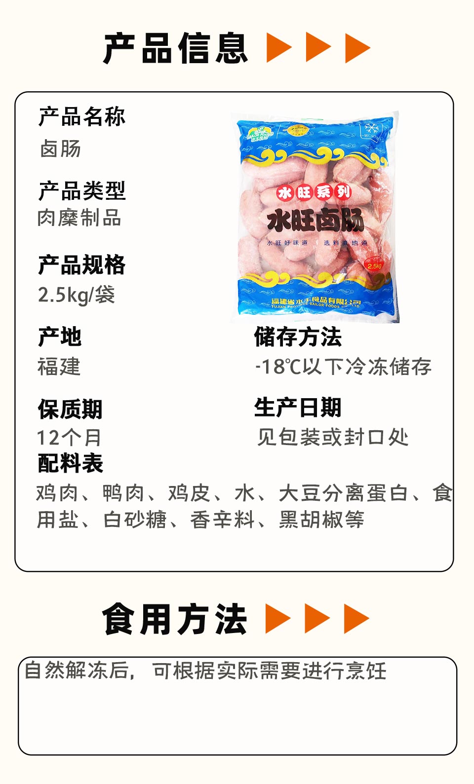 水手水旺卤肠2.5kg/袋(80g/支)6袋/件