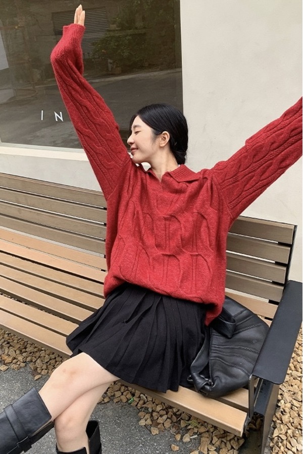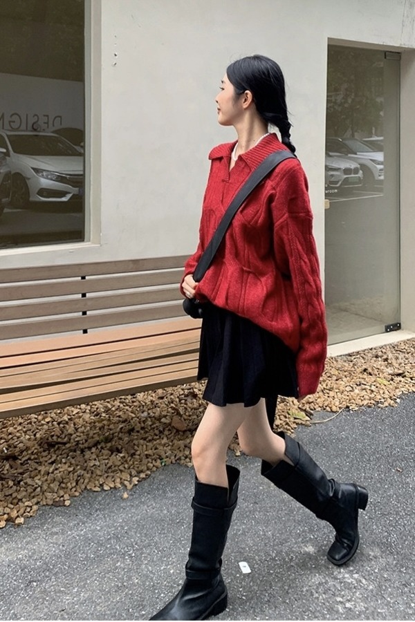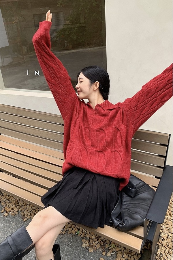 ANSUABEL 韩版慵懒设计感宽松毛衣 19243