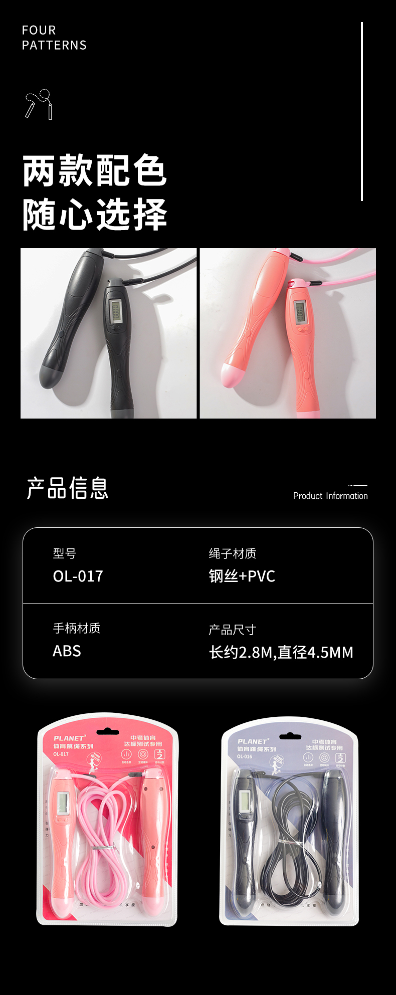 【娱乐星球】中考达标计数钢丝跳绳 计时 计数 黑色粉色