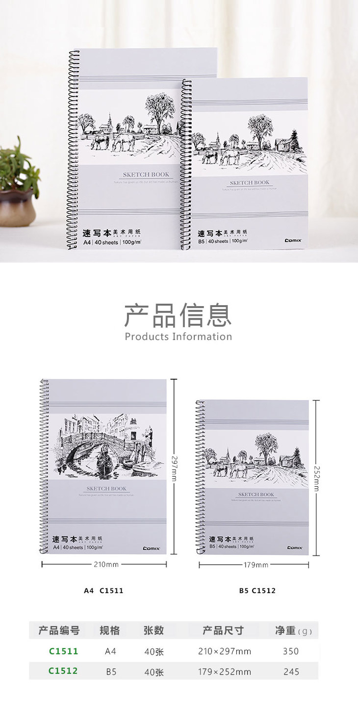 齐心素描本C1520 40张