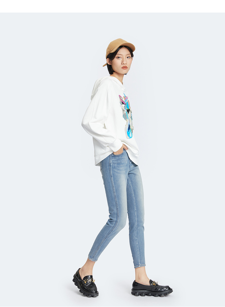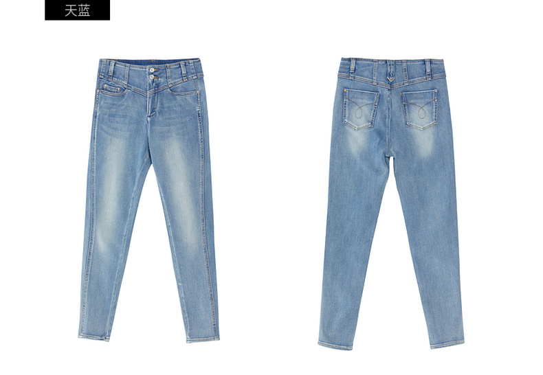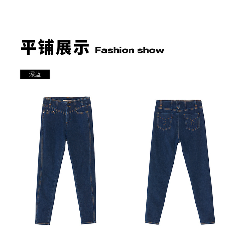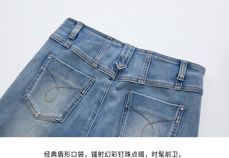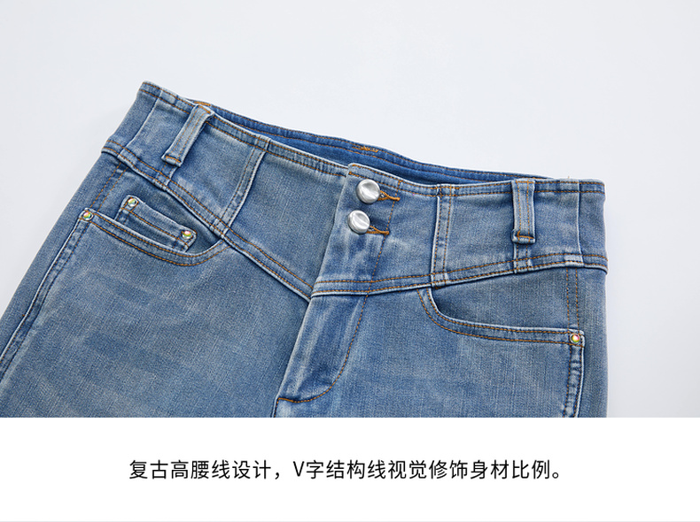 谜底2022春新款长裤女运动感紧身收腰弹性牛仔铅笔裤221MK0065