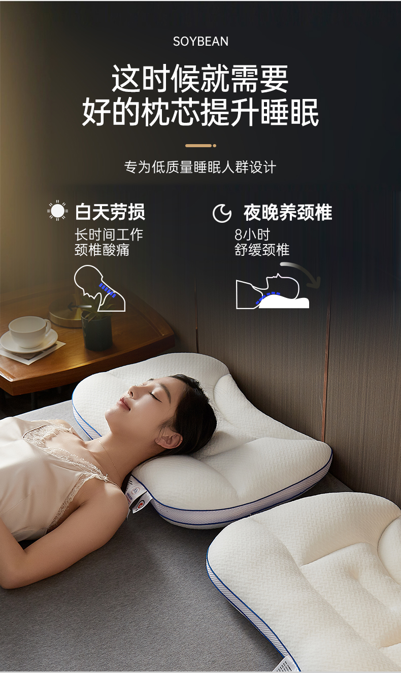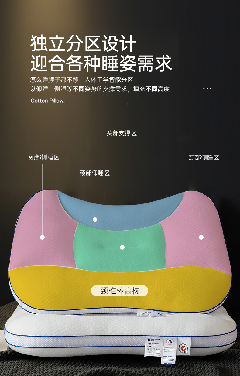 自然醒分区高低舒颈立体护脊枕修复肩颈枕头助睡眠枕芯一对套装家用男女反牵引枕XK