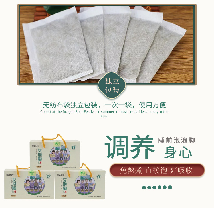 【3盒装】艾草泡脚包、独立包装直接泡、川芎 益母草 当归 老姜 丹参 红花 独活组合泡脚包、10包/盒