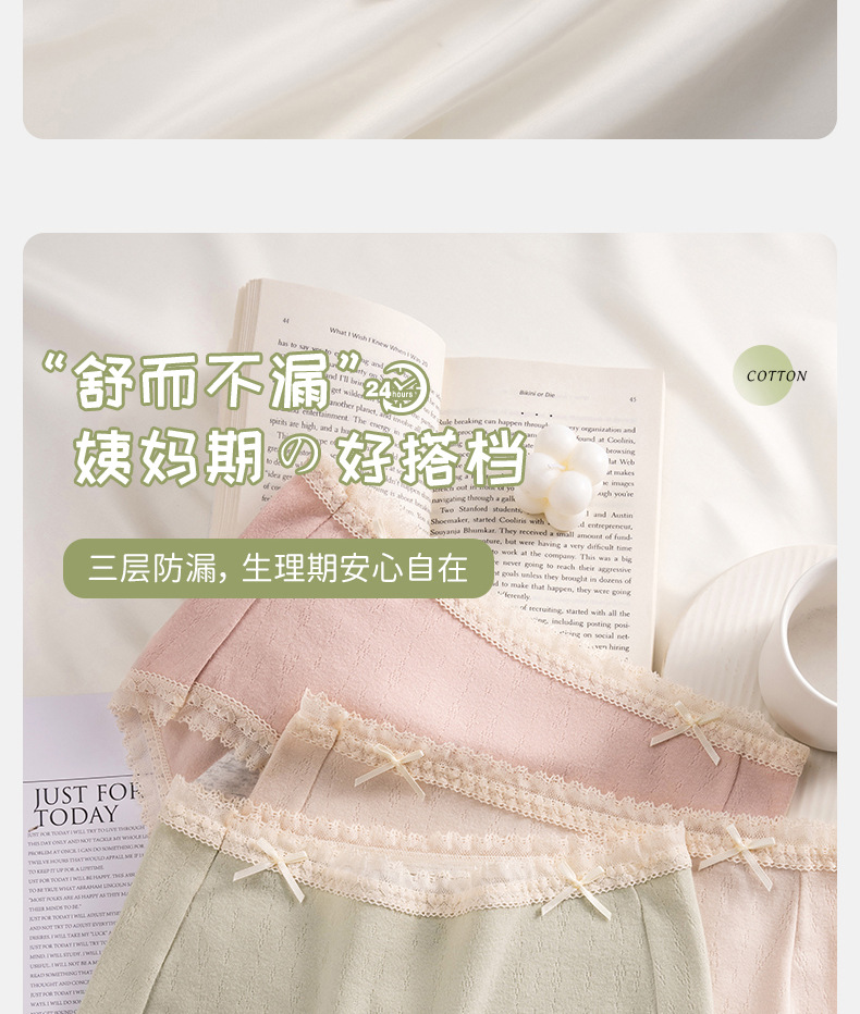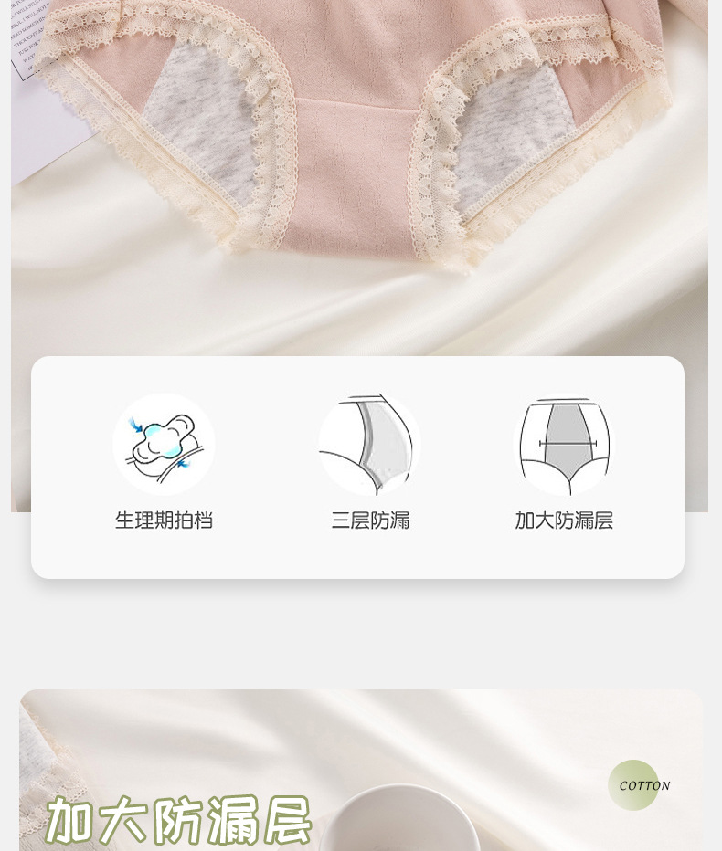 夜晚安心睡 纯棉生理内裤 三层加大防侧漏少女生来姨妈经期月经内裤女士生理裤