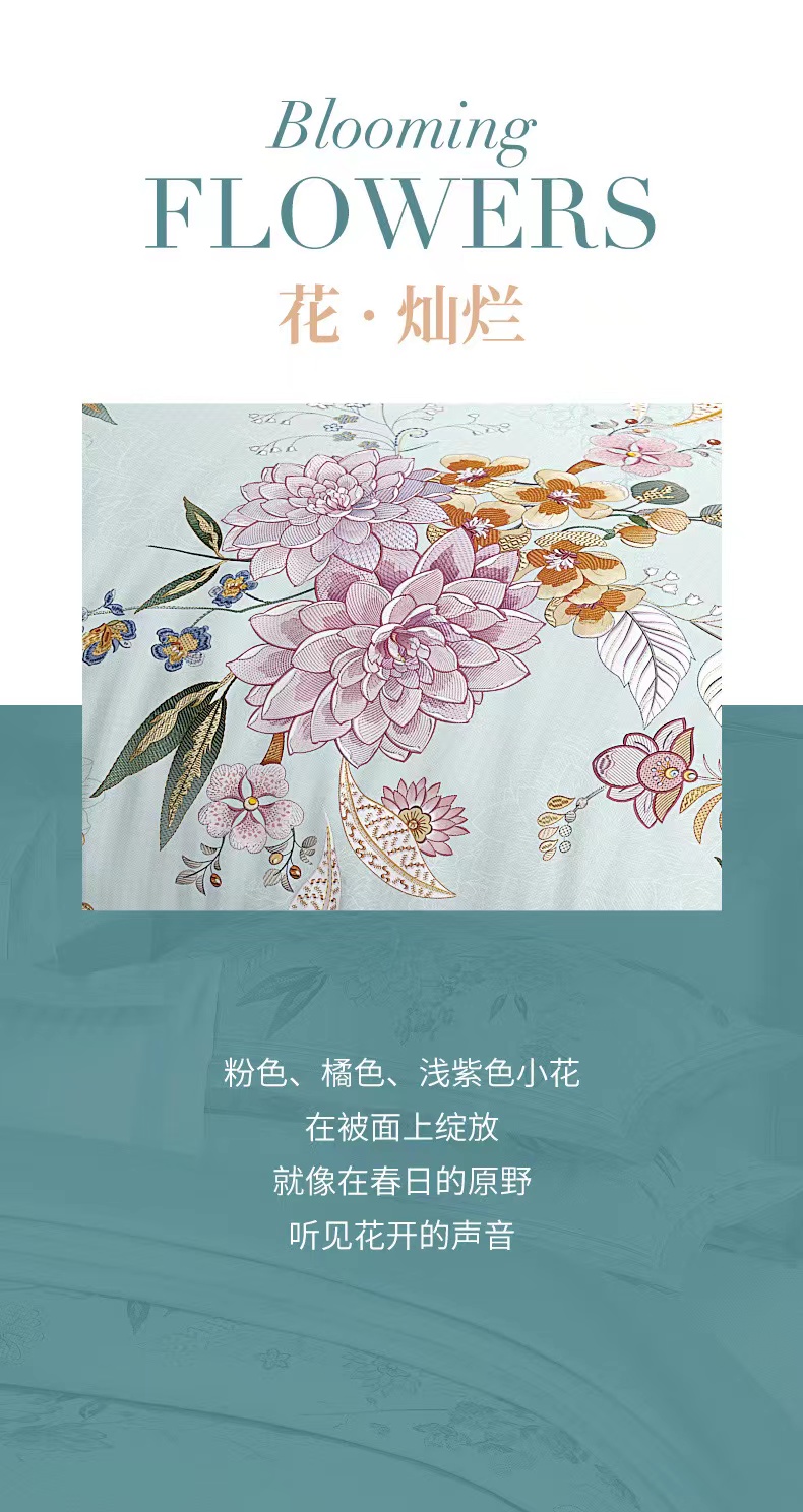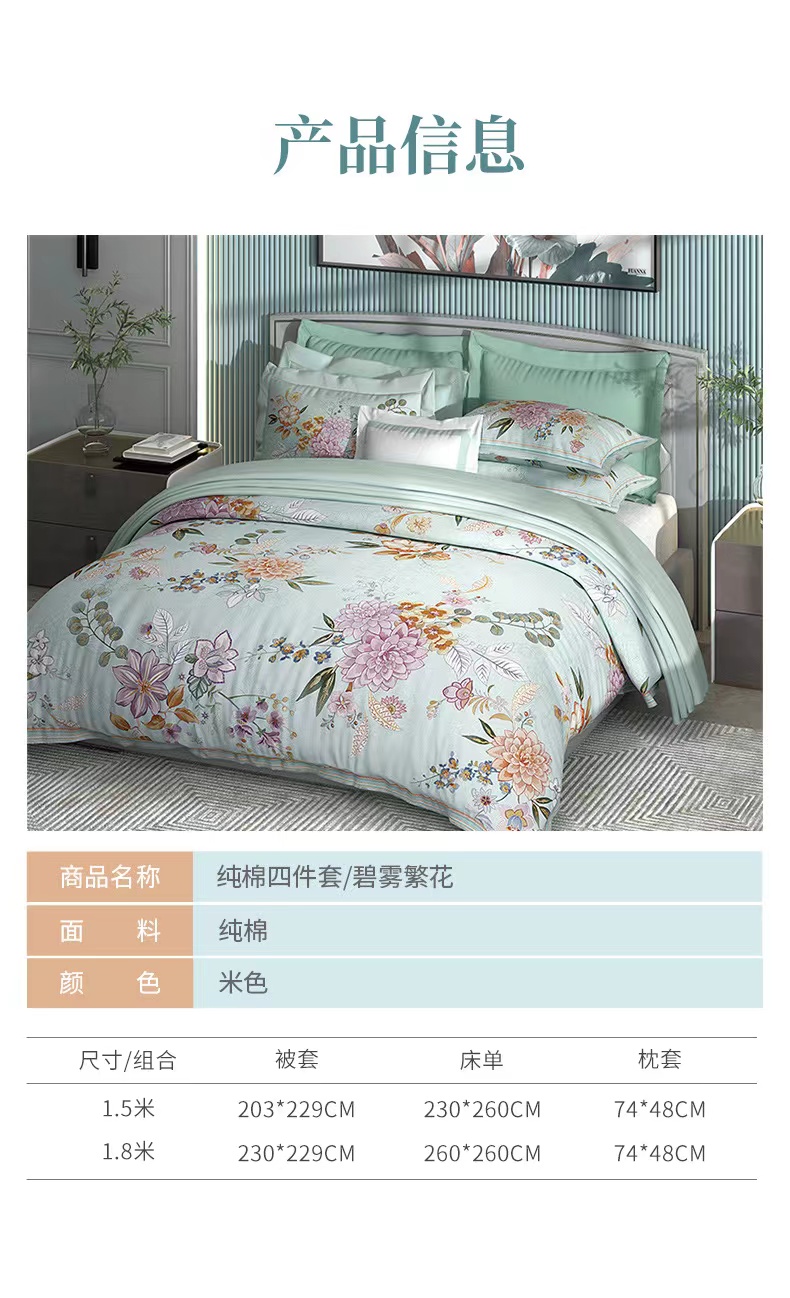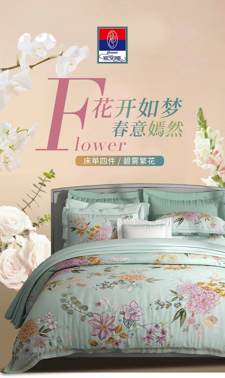 富安娜国绣印花四件/碧雾繁花