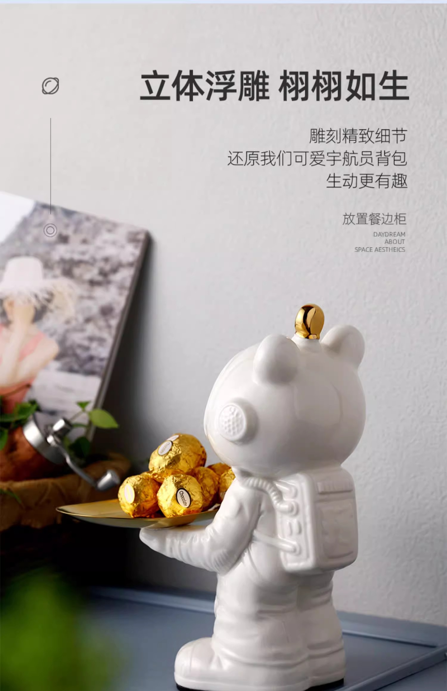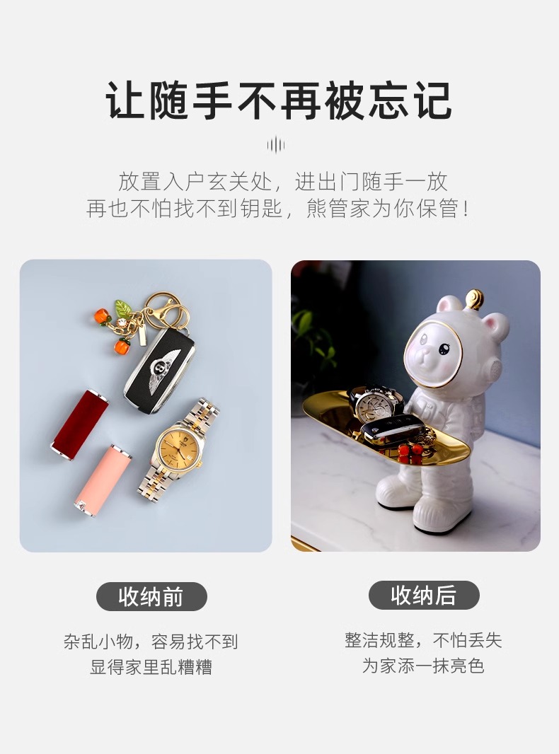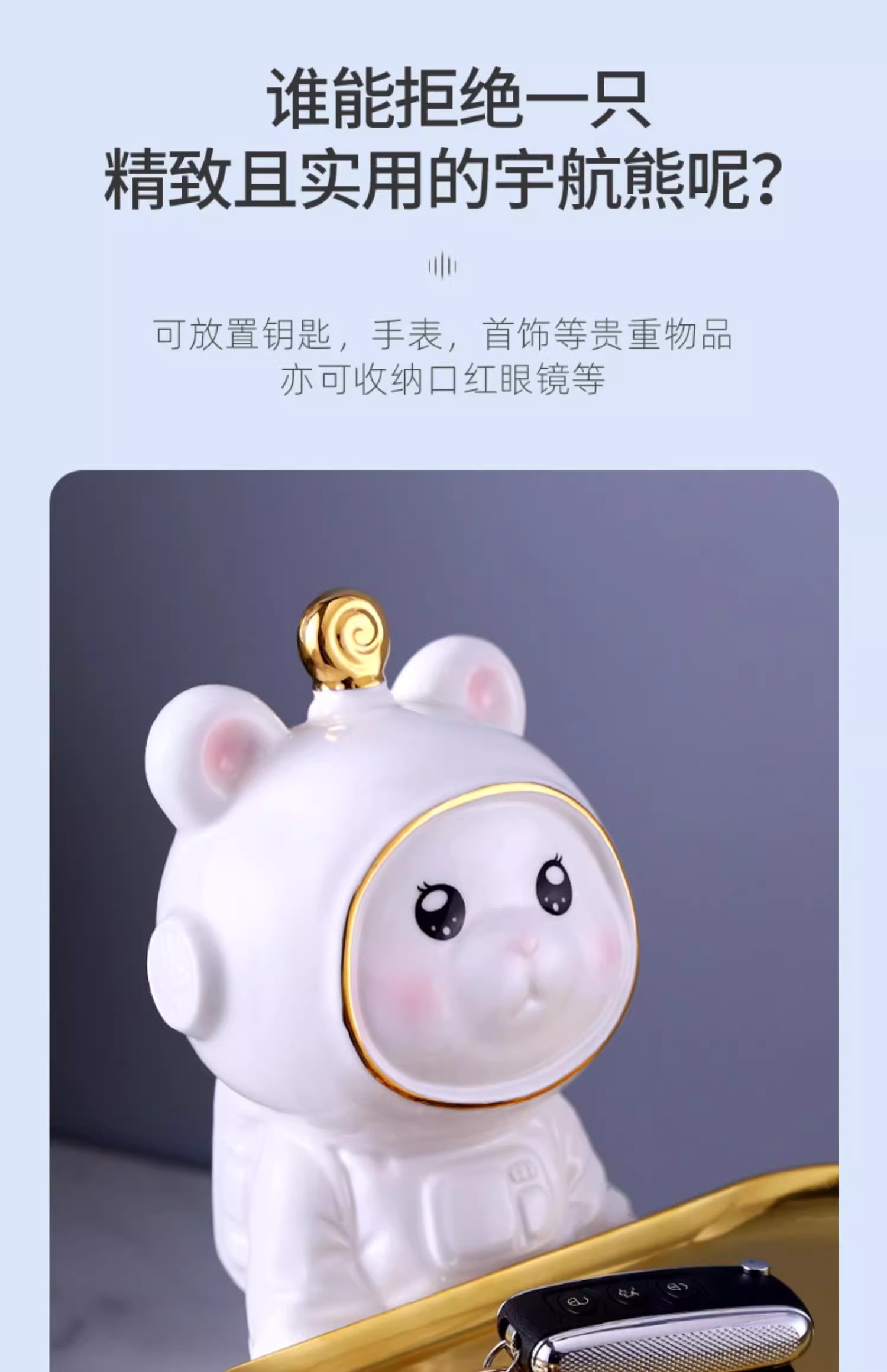 诺轩轻奢陶瓷小猫摆件桌面玄关收纳进门钥匙客厅家居装饰品开业礼物