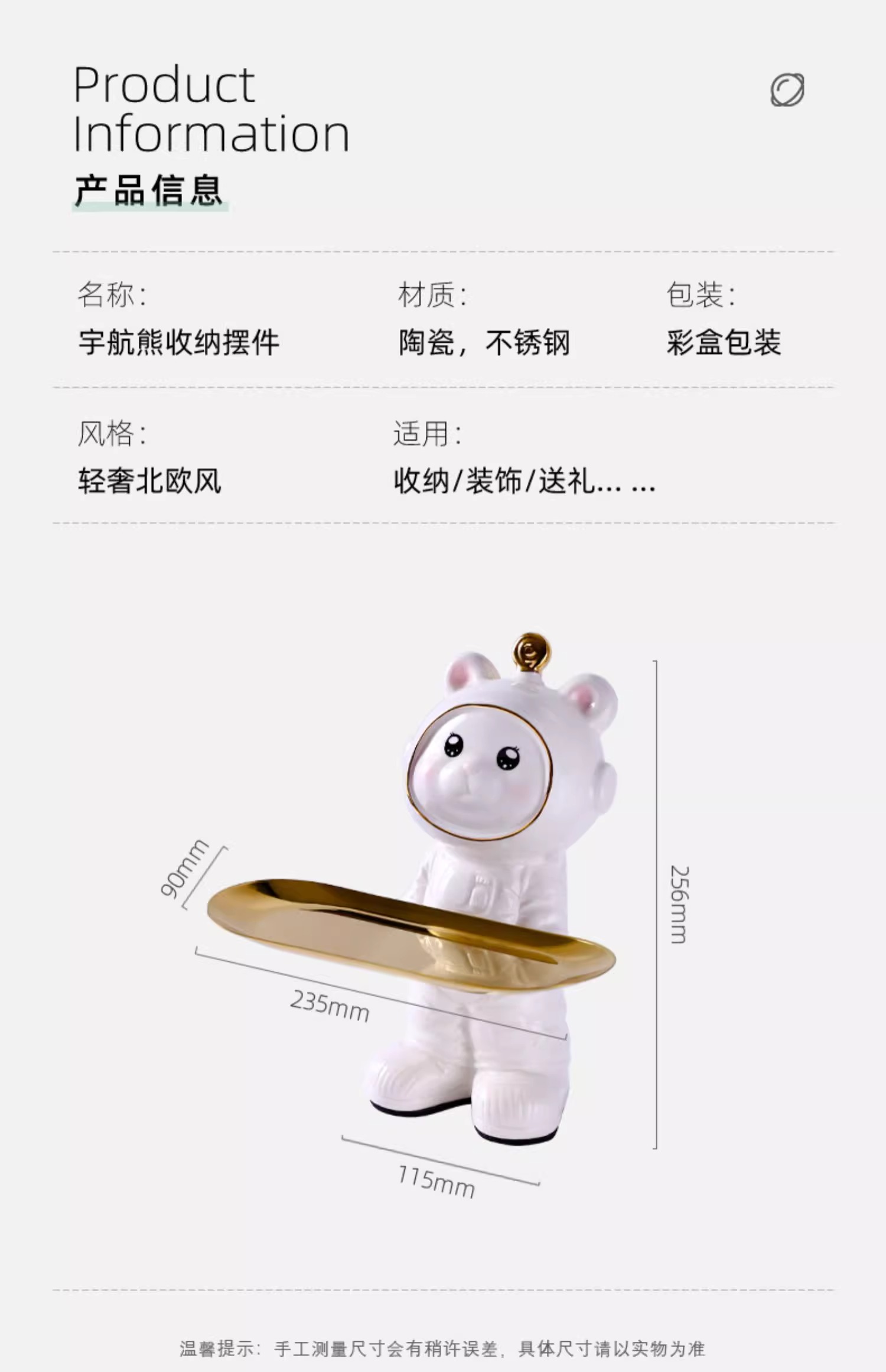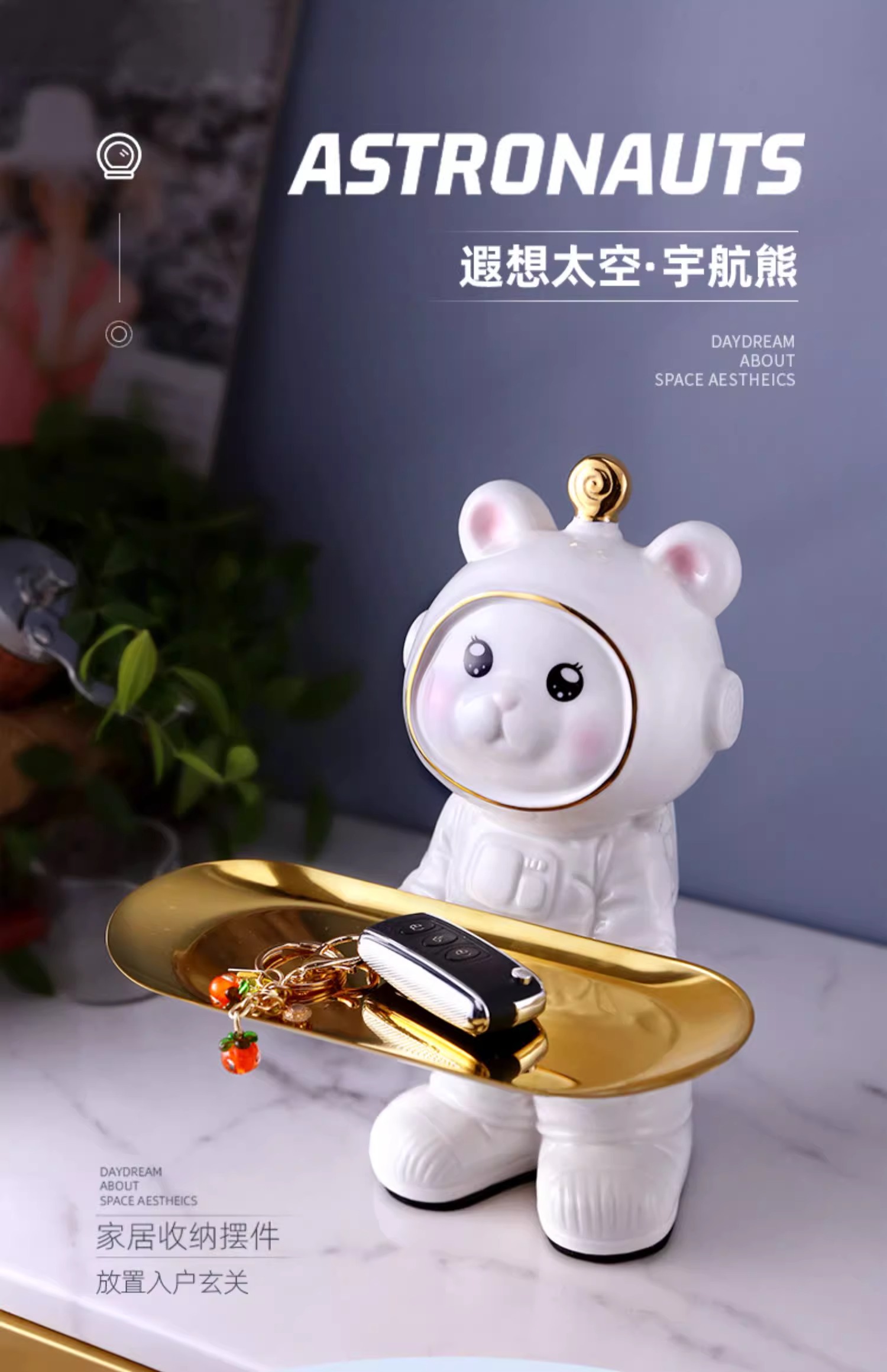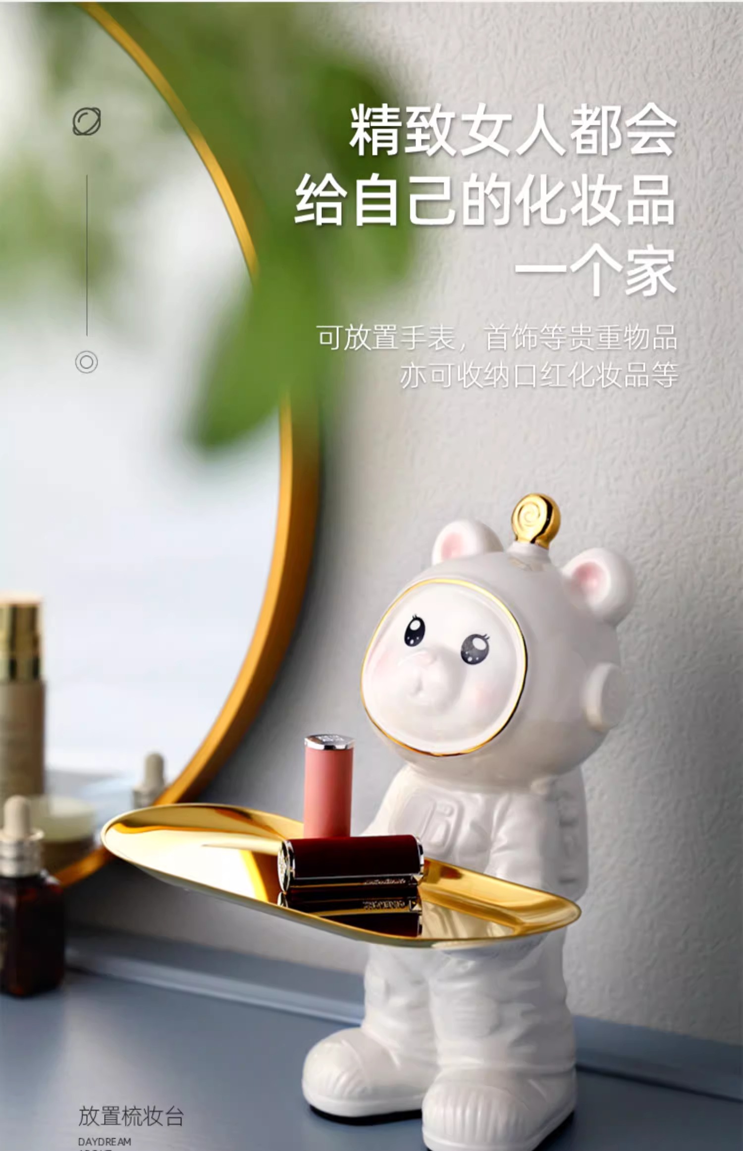 诺轩轻奢陶瓷小猫摆件桌面玄关收纳进门钥匙客厅家居装饰品开业礼物