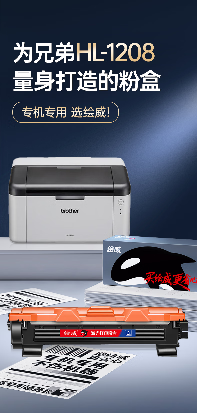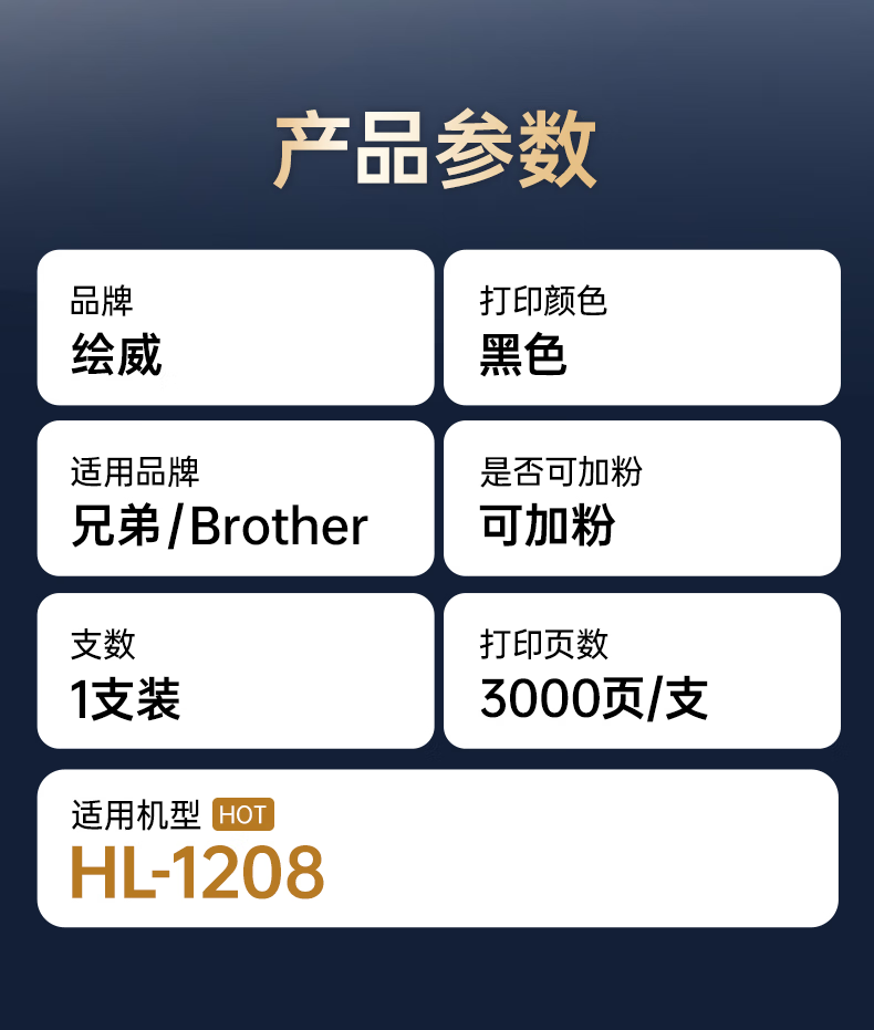 绘威HL-1208粉盒适用兄弟HL-1208硒鼓1208墨粉hl1208墨盒brother打印机