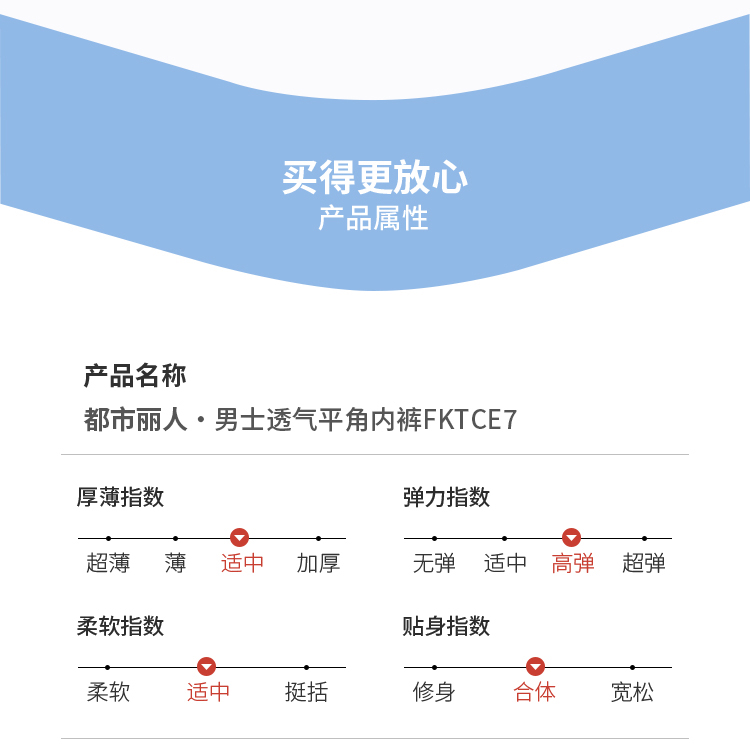 都市丽人都市锋尚内裤简约基础平角裤50S人棉男士内裤FKTCE7