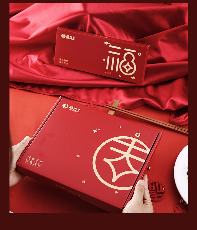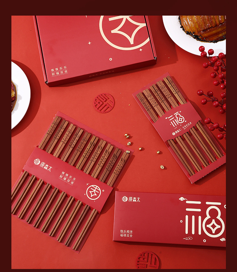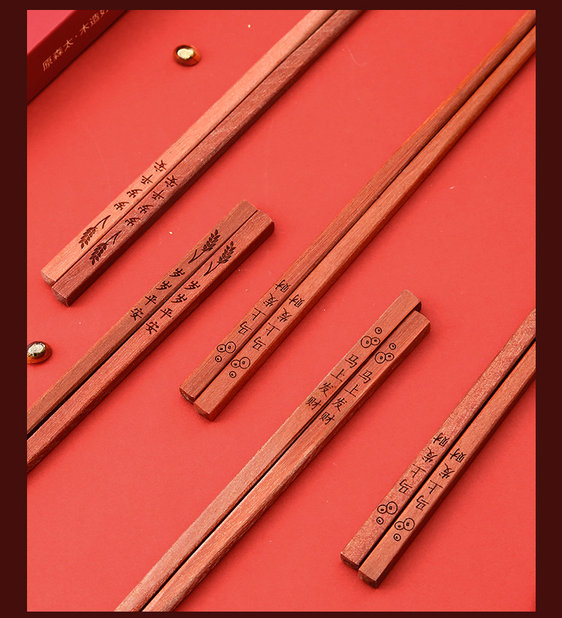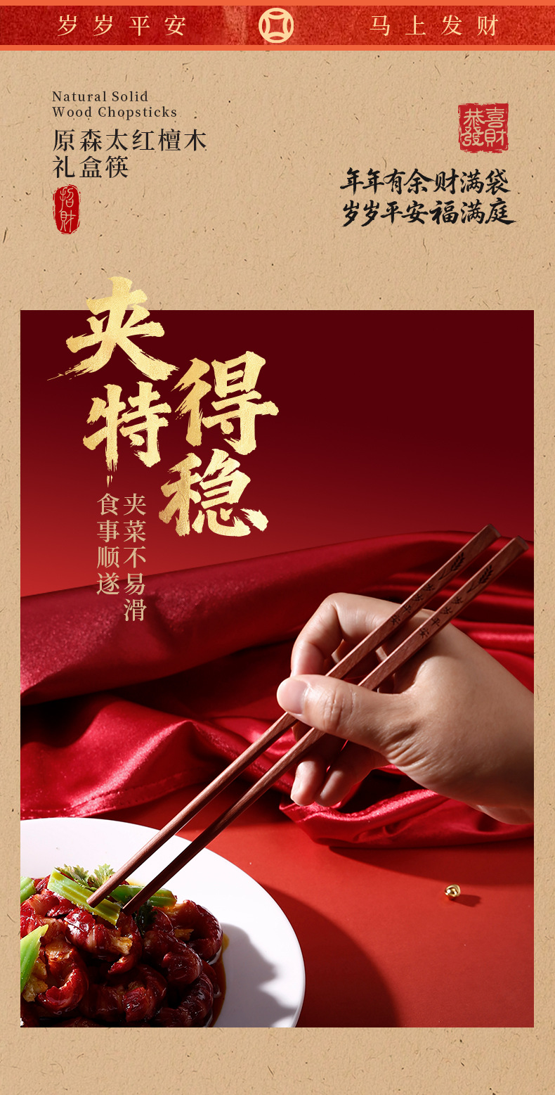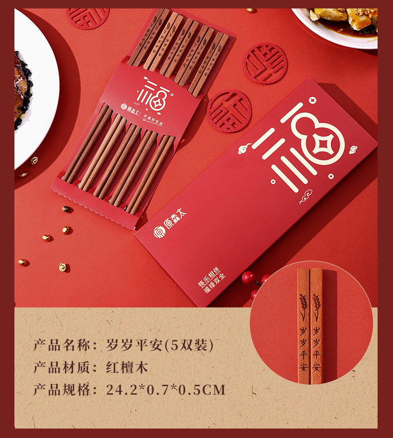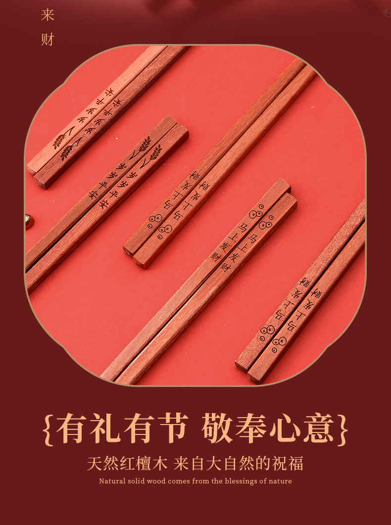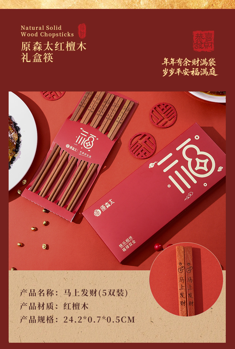 【无漆无蜡红檀木筷子礼盒装】原森太红檀木筷子马年新春马上有钱中式筷礼盒装新年喜庆送礼套装