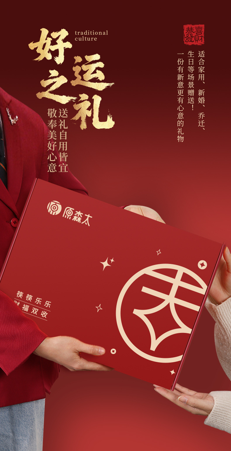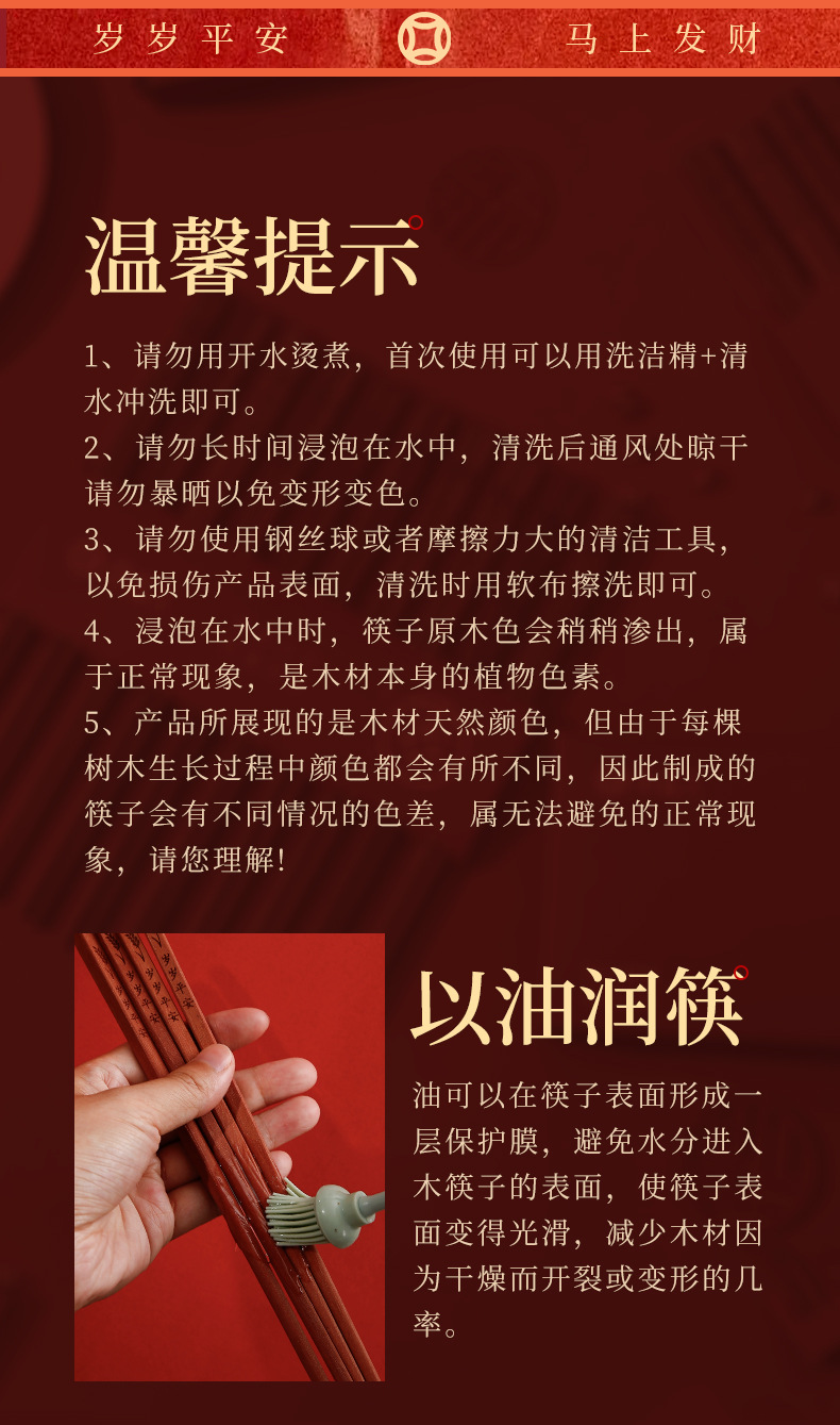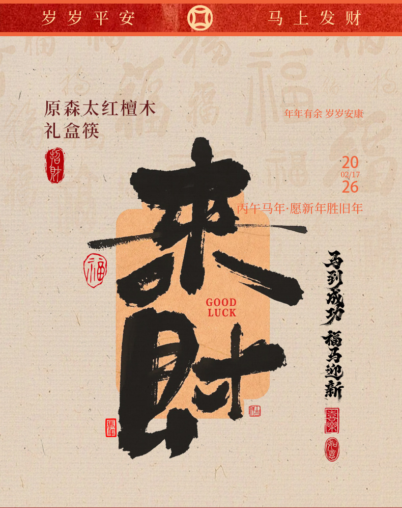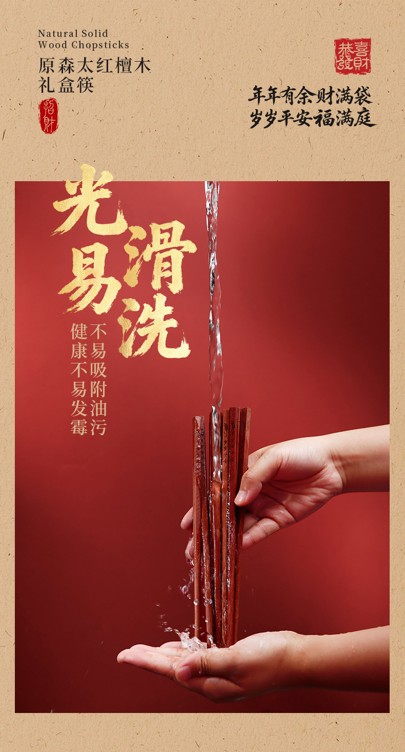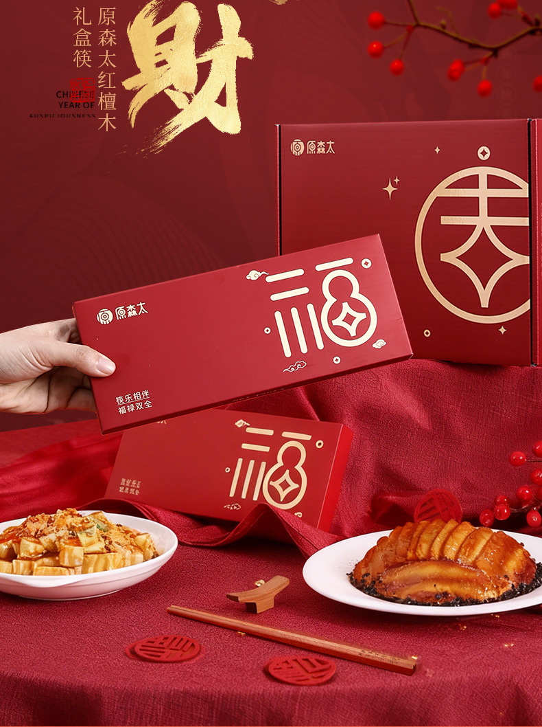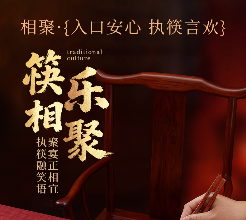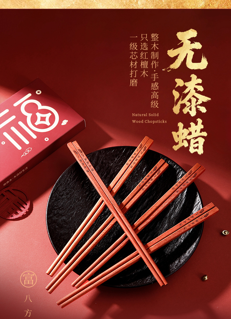 【无漆无蜡红檀木筷子礼盒装】原森太红檀木筷子马年新春马上有钱中式筷礼盒装新年喜庆送礼套装