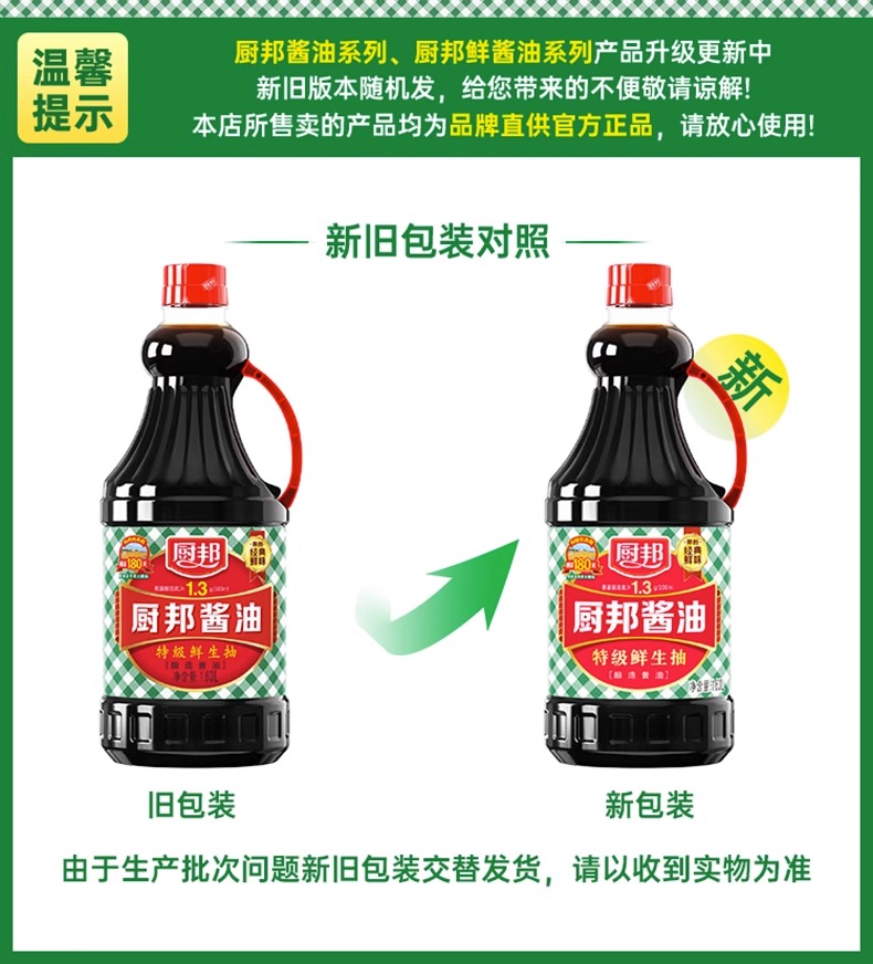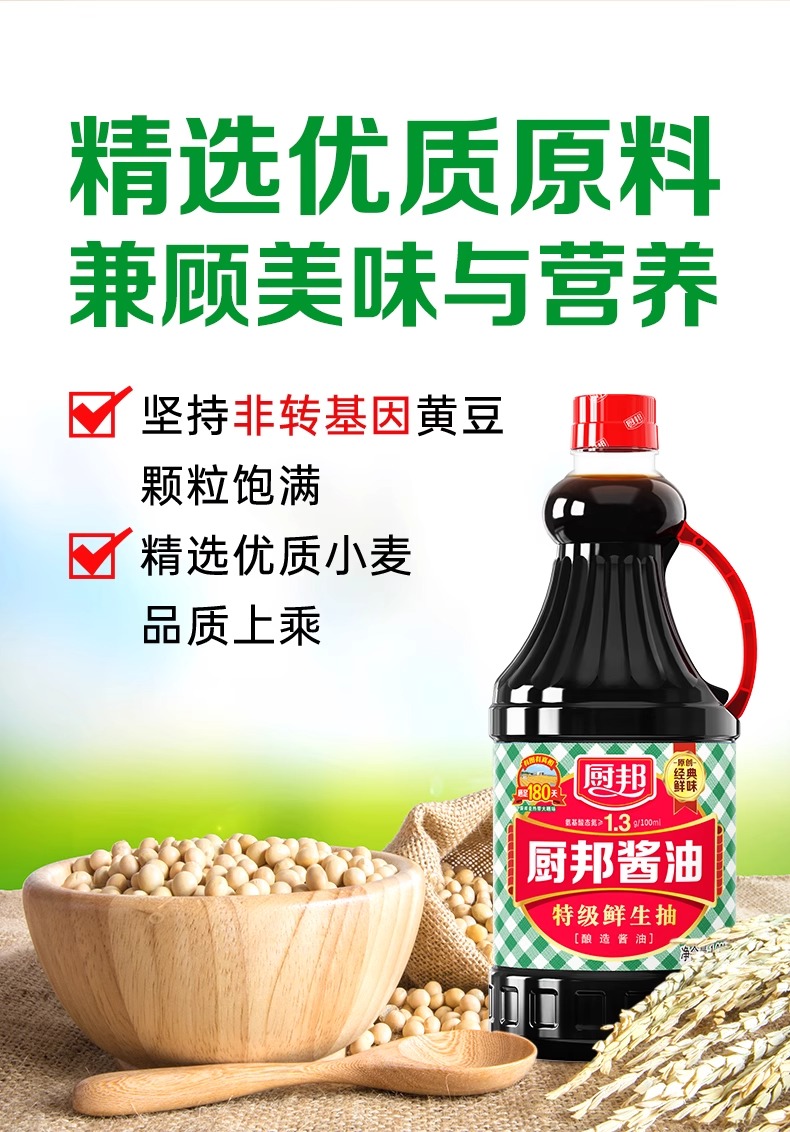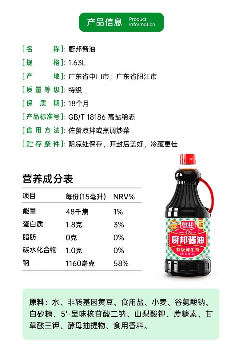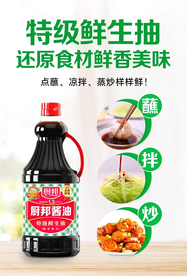 厨邦酱油1.63L*1特级酿造生抽家用大瓶装炒菜红烧蒸鱼蘸料调味品LY