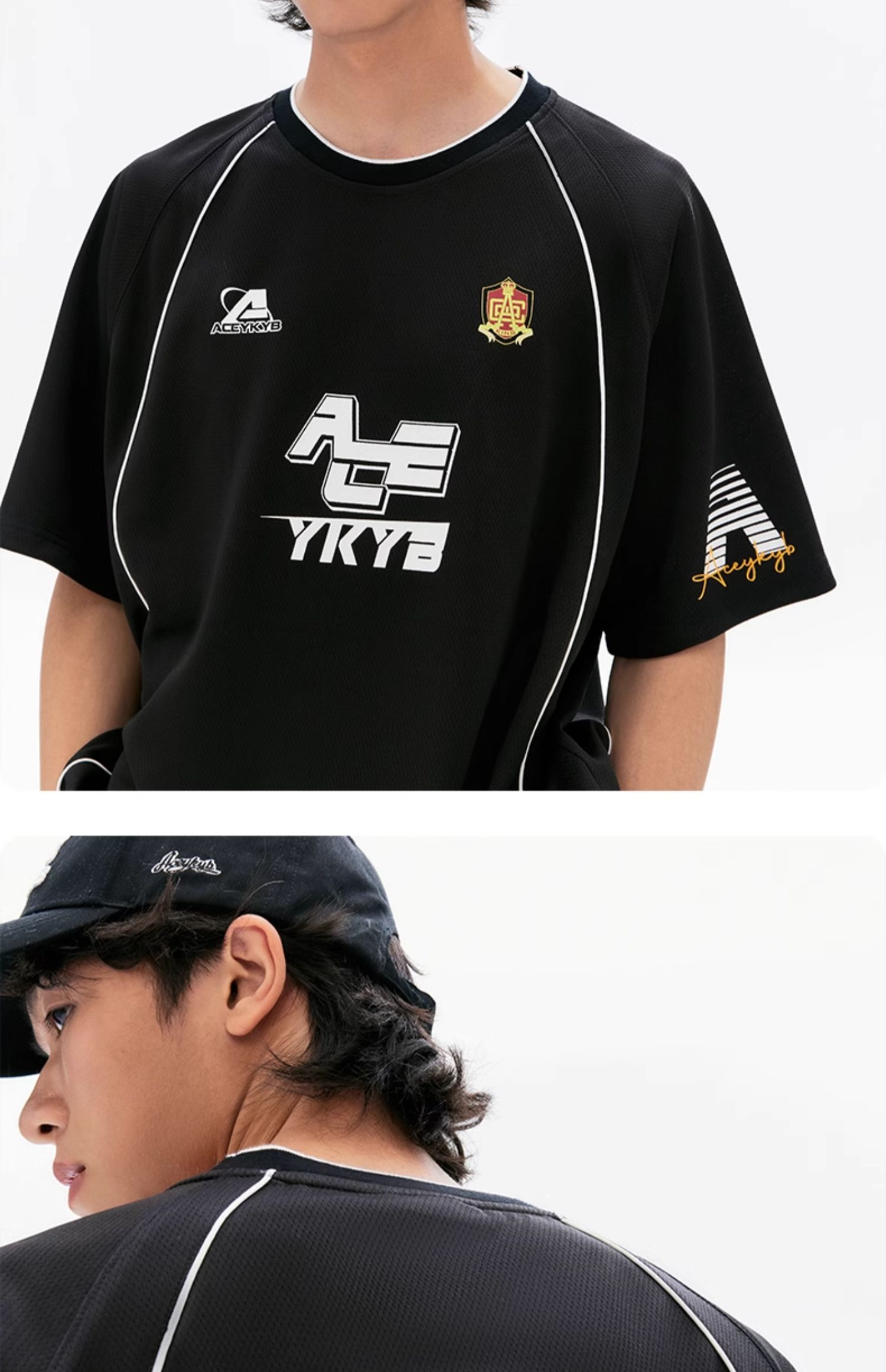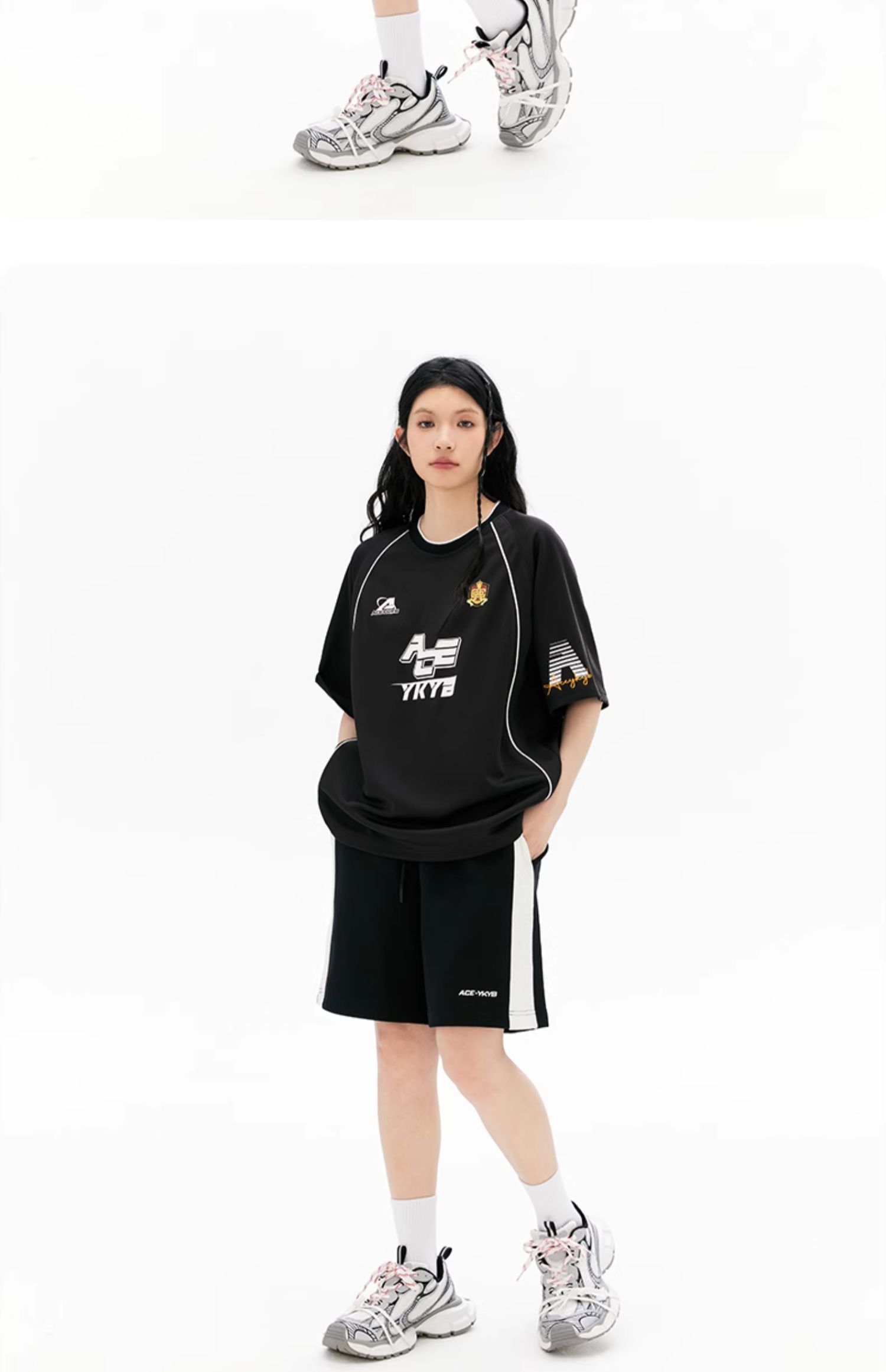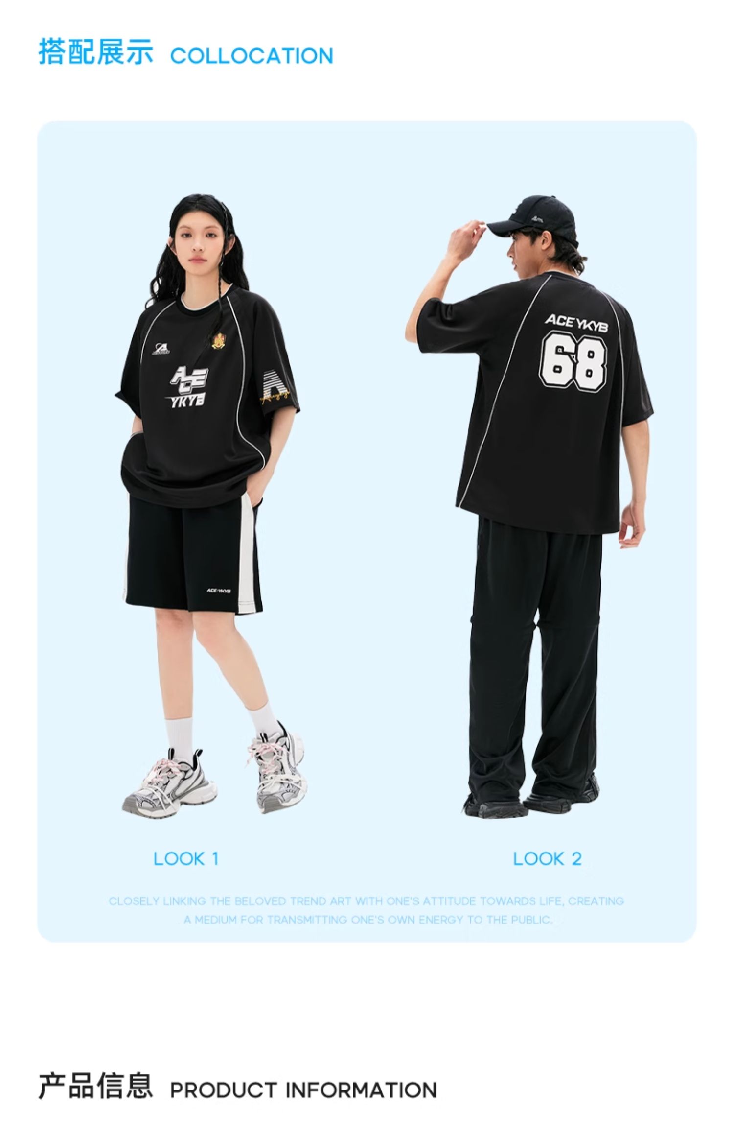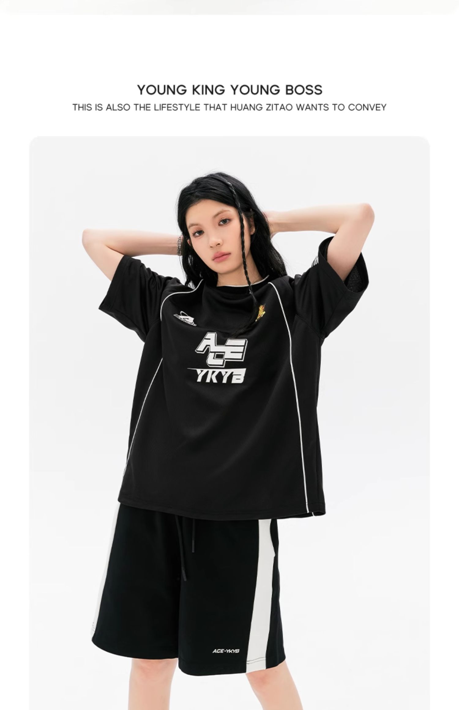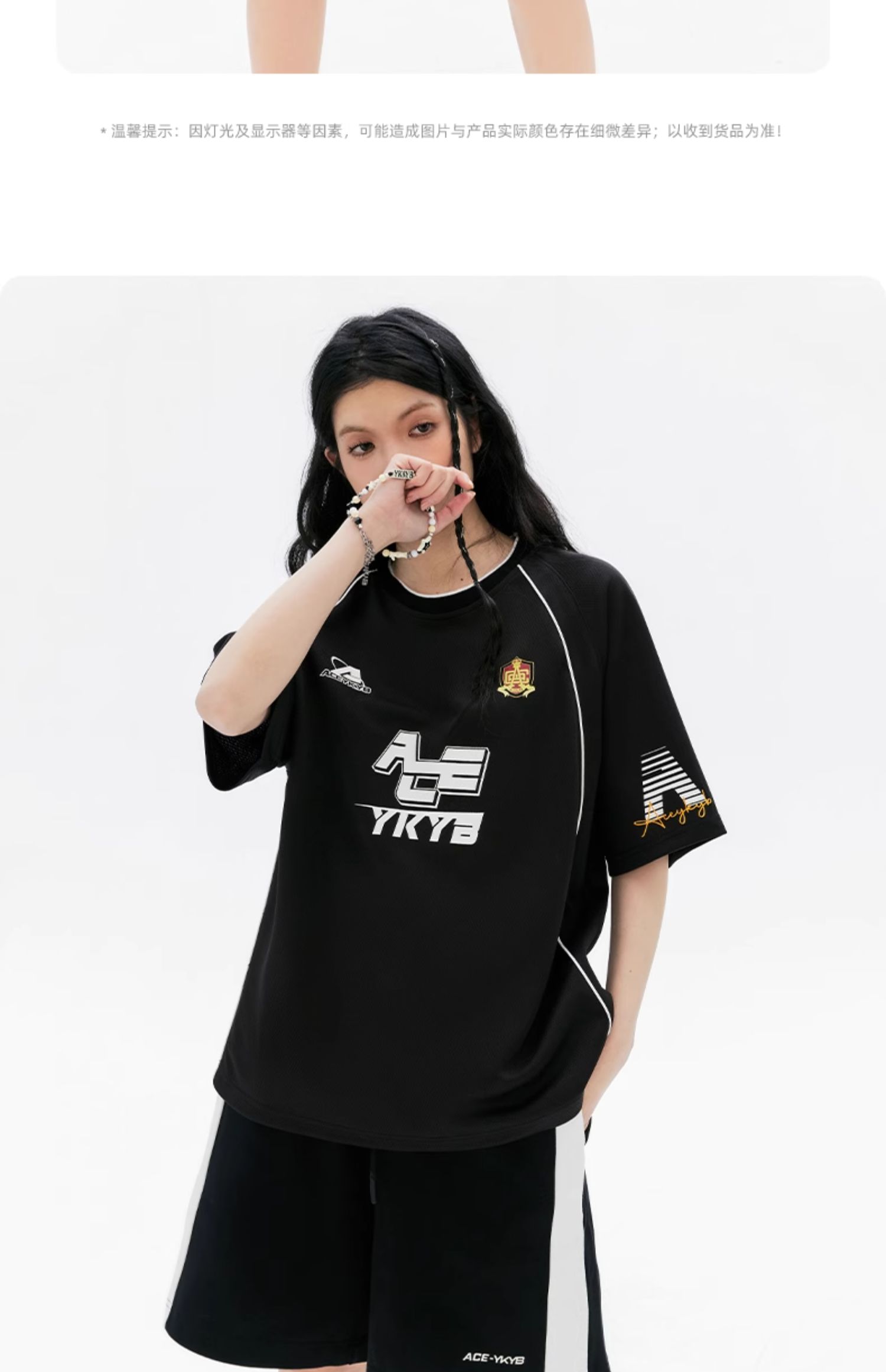 ACEYKYB黄子韬美式T恤情侣2025夏季新款潮流复古宽松撞色休闲短袖