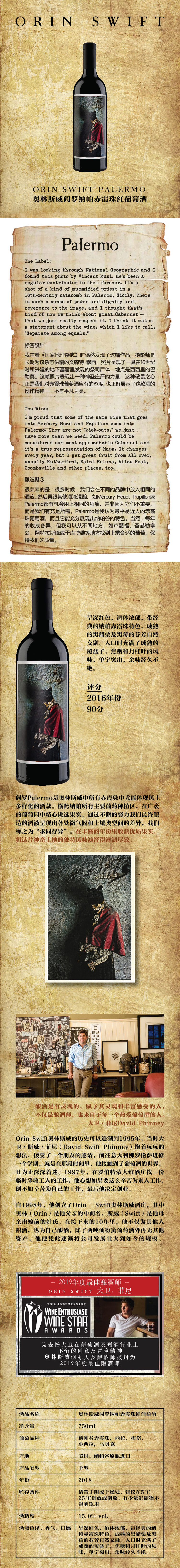 进口美国奥林斯威阎罗赤霞珠红葡萄酒750ml Orin Swift