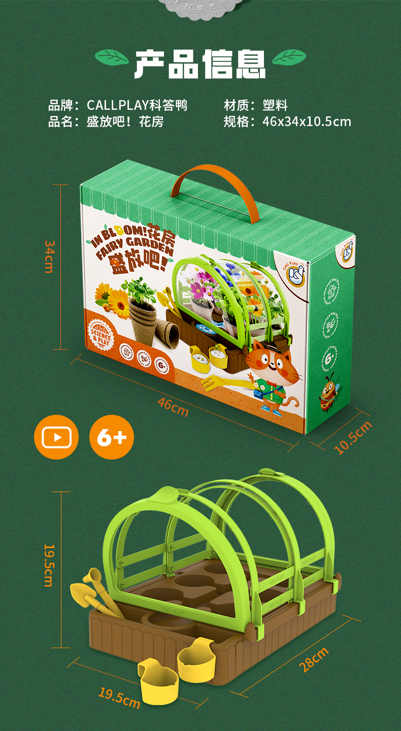 CALLPLAY科答鸭种植花房绽放吧迷你盆栽小学生生物阳光房植物儿童通用玩具