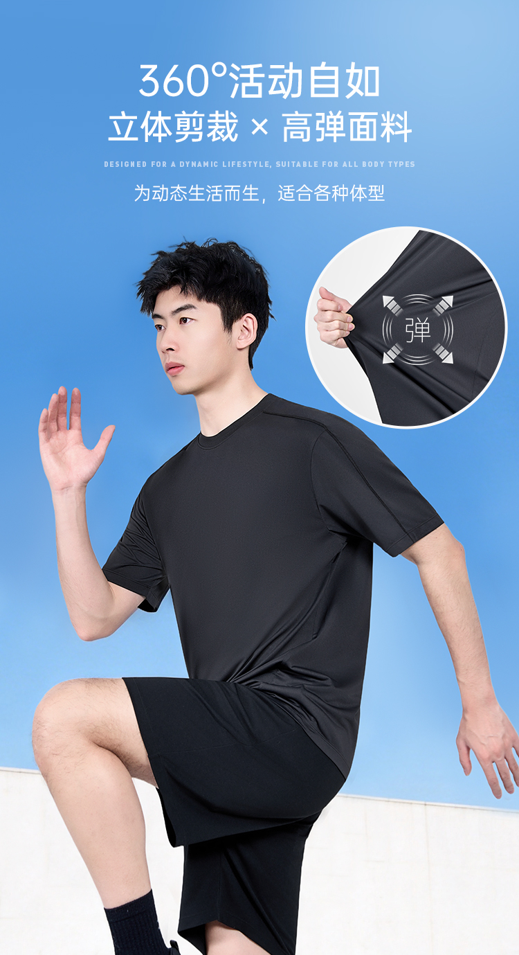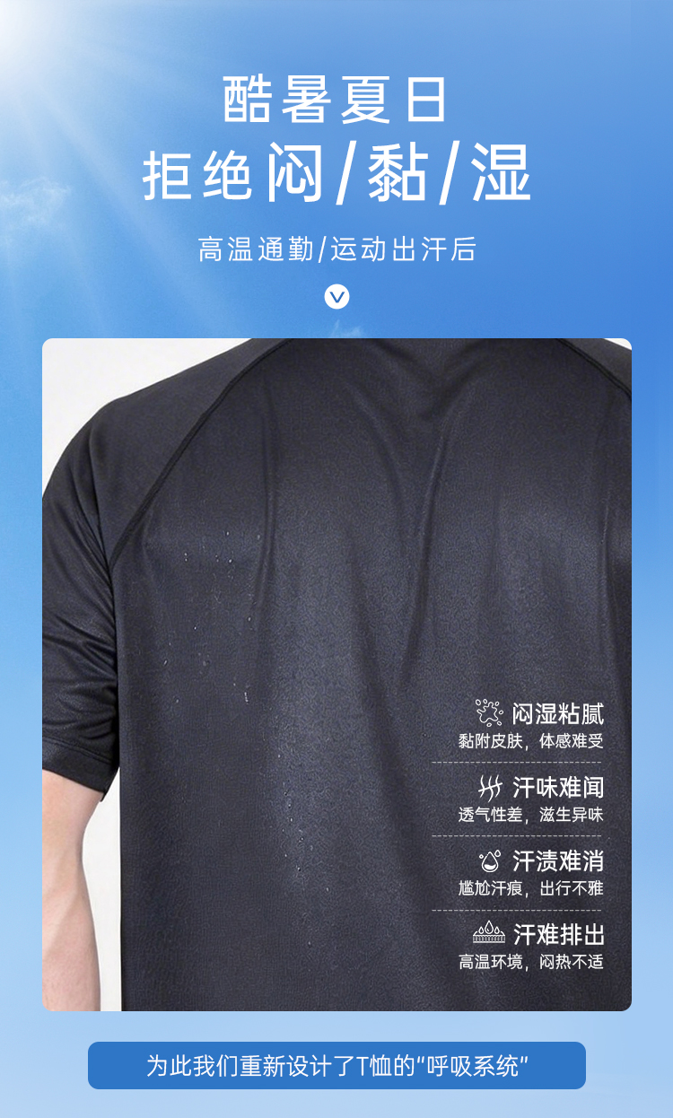 【空气桥吸湿速干插肩袖短袖T恤】凉感圆领通勤短袖T恤运动透气半袖打底衫TZ608