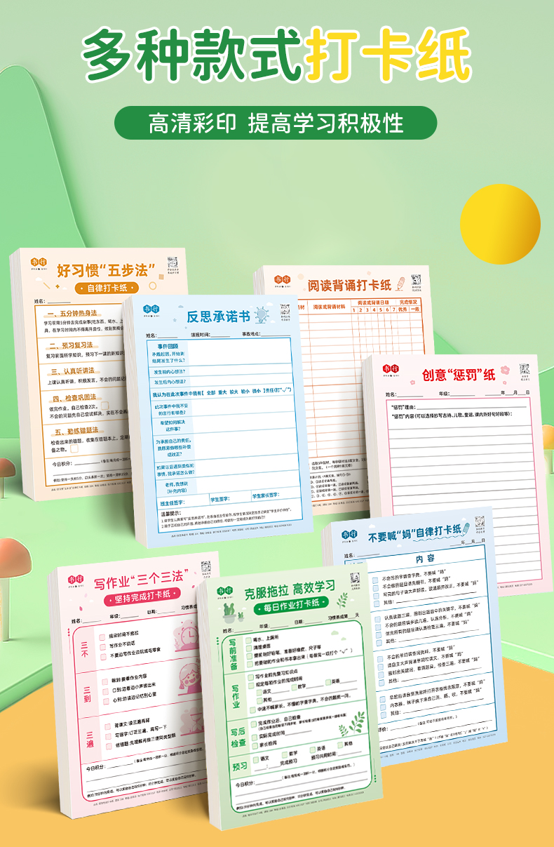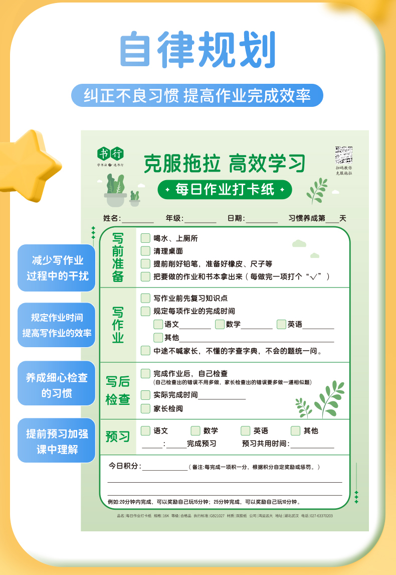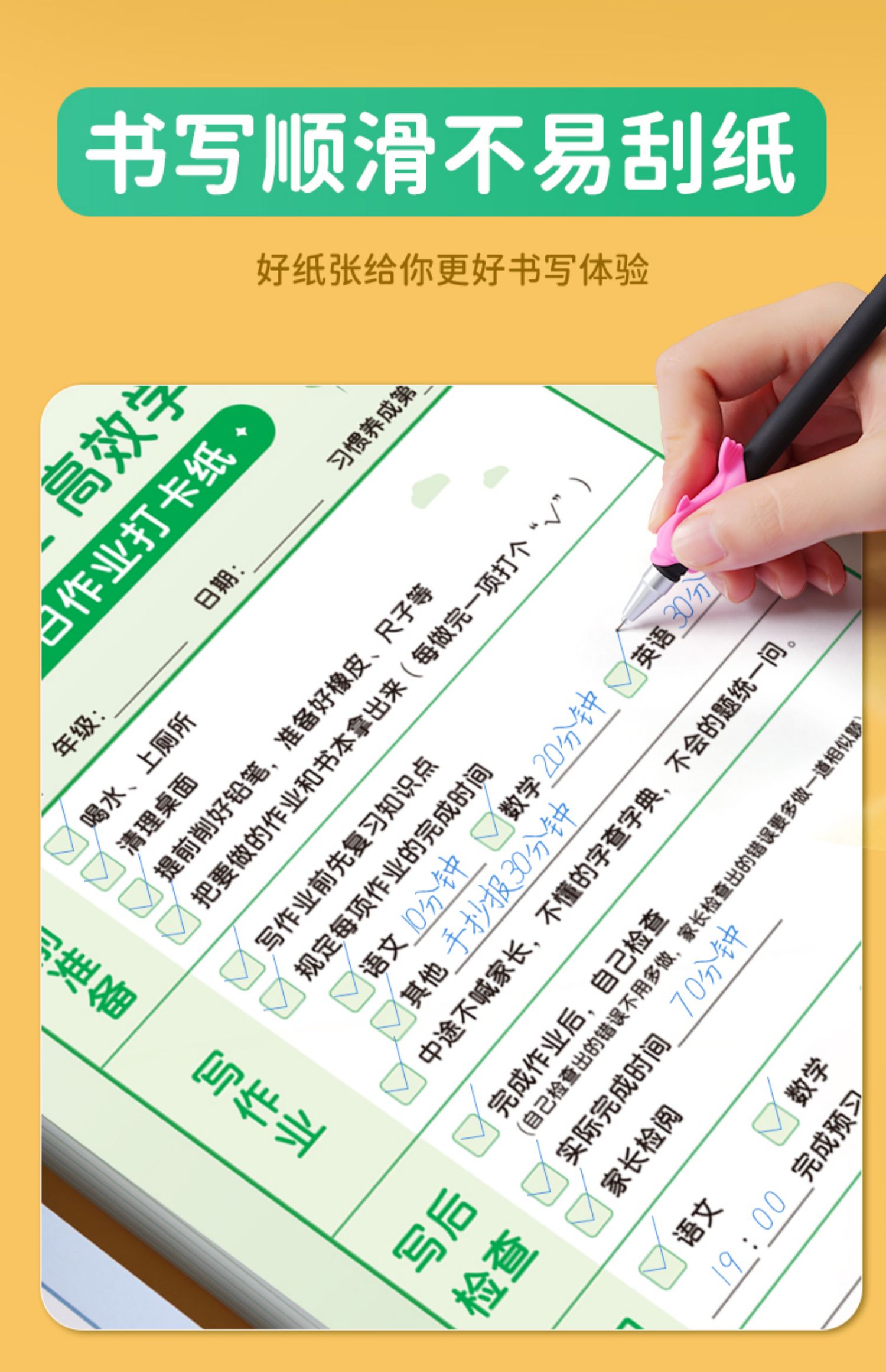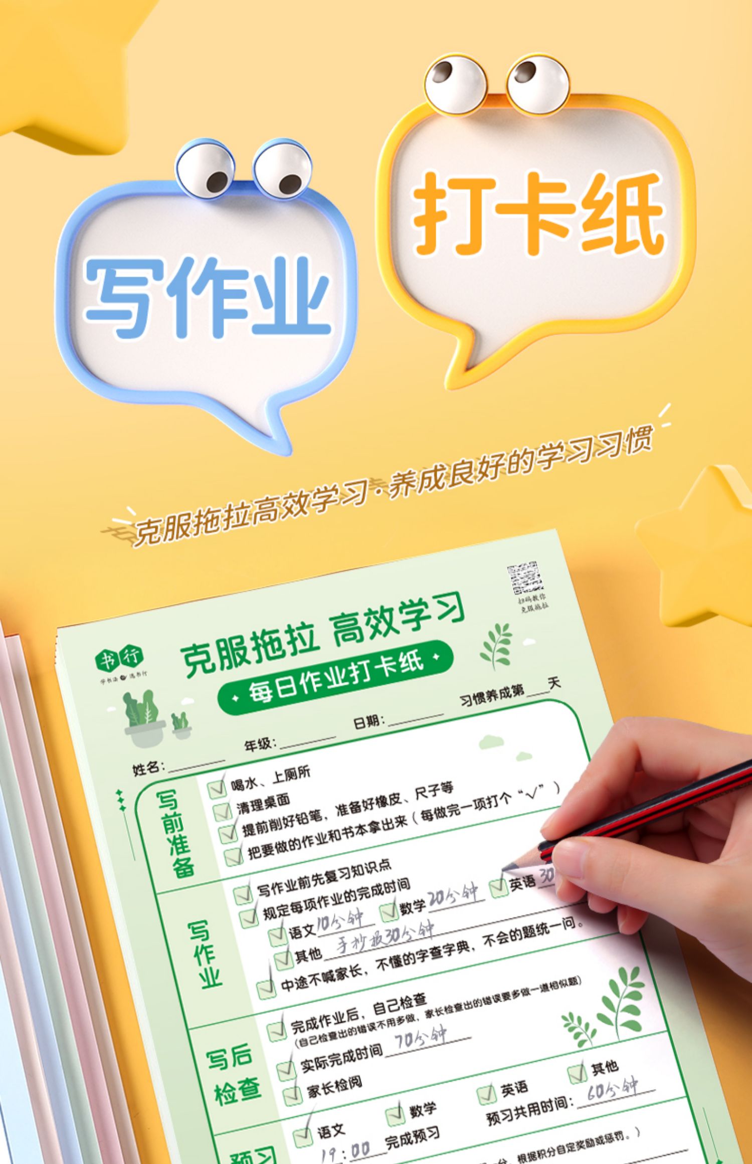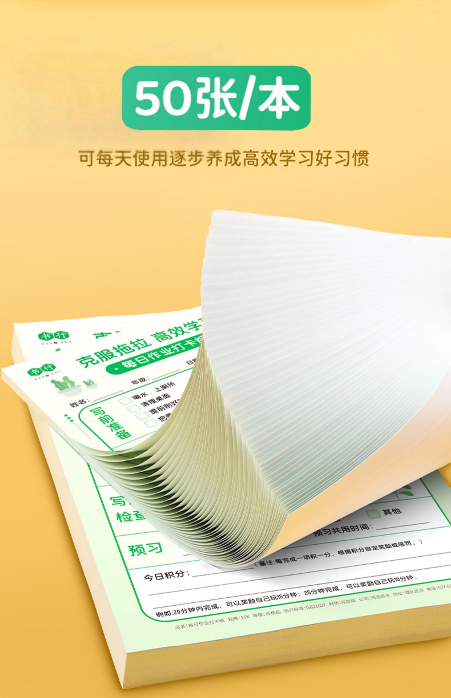 【自律打卡纸】高效写作业克服拖拉养成好习惯作业打卡纸小学生写作业班级创意惩罚自律反省学习计划表每日打卡纸