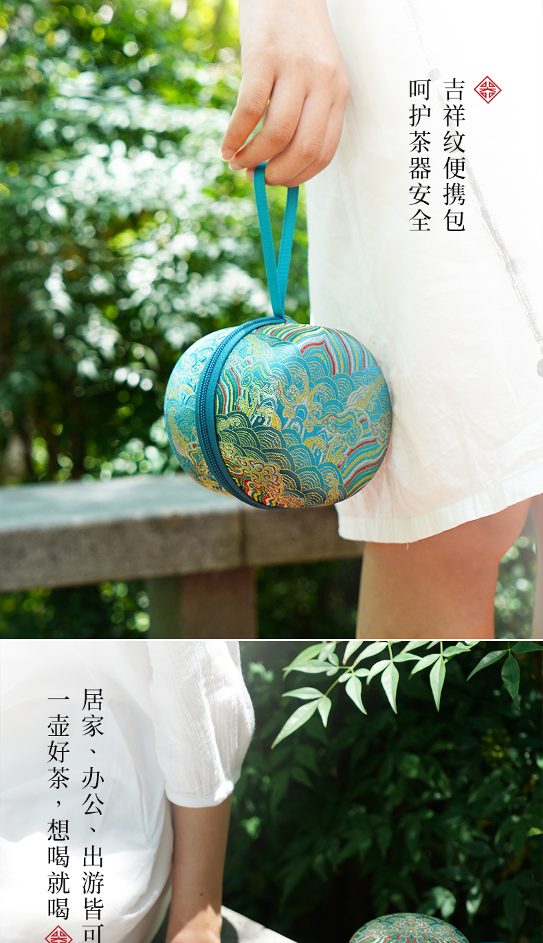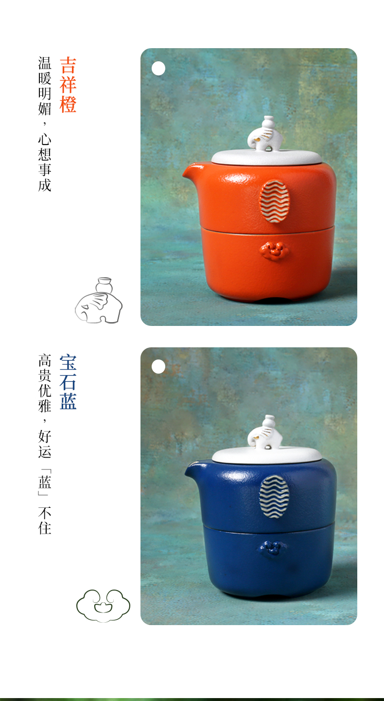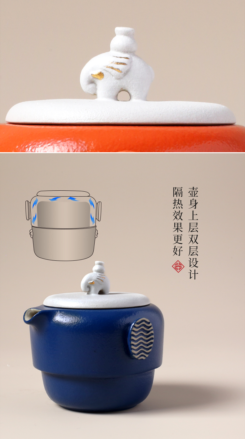 【特惠7折】陆宝联名旅行快客杯功夫茶具套装一人户外便携太平有象旅行茶具组宝石蓝