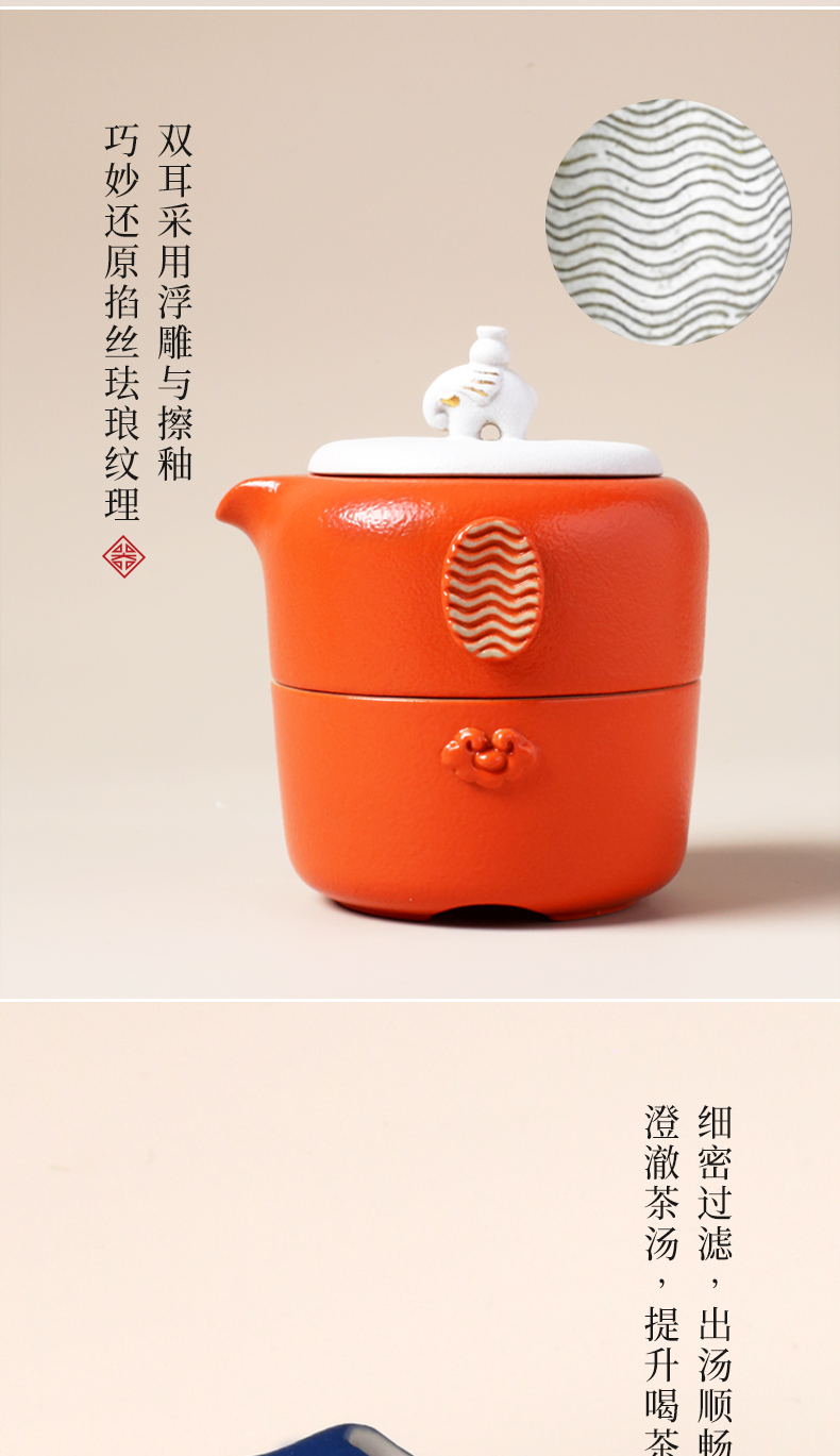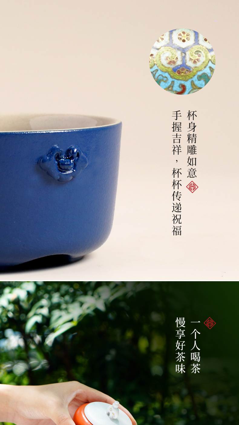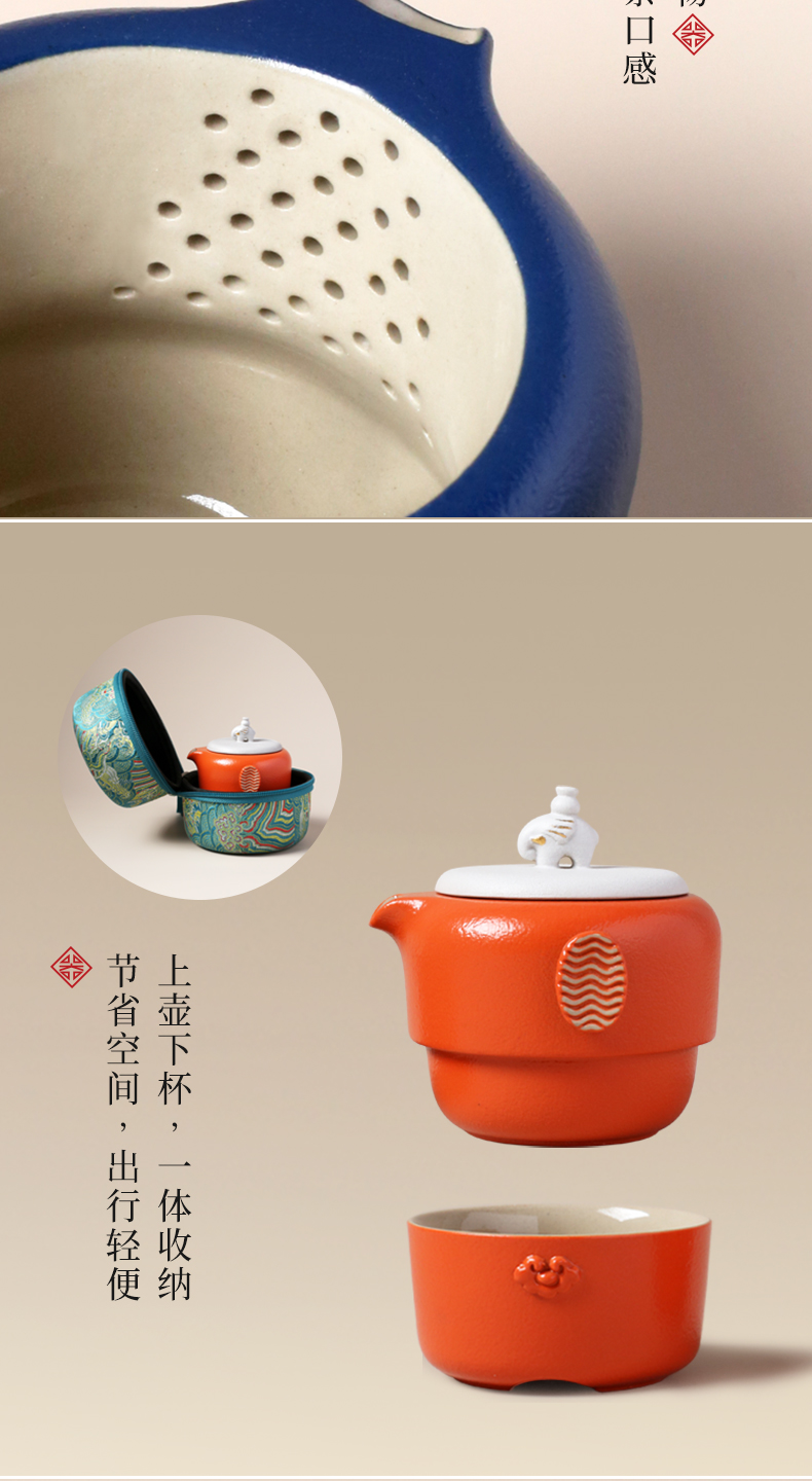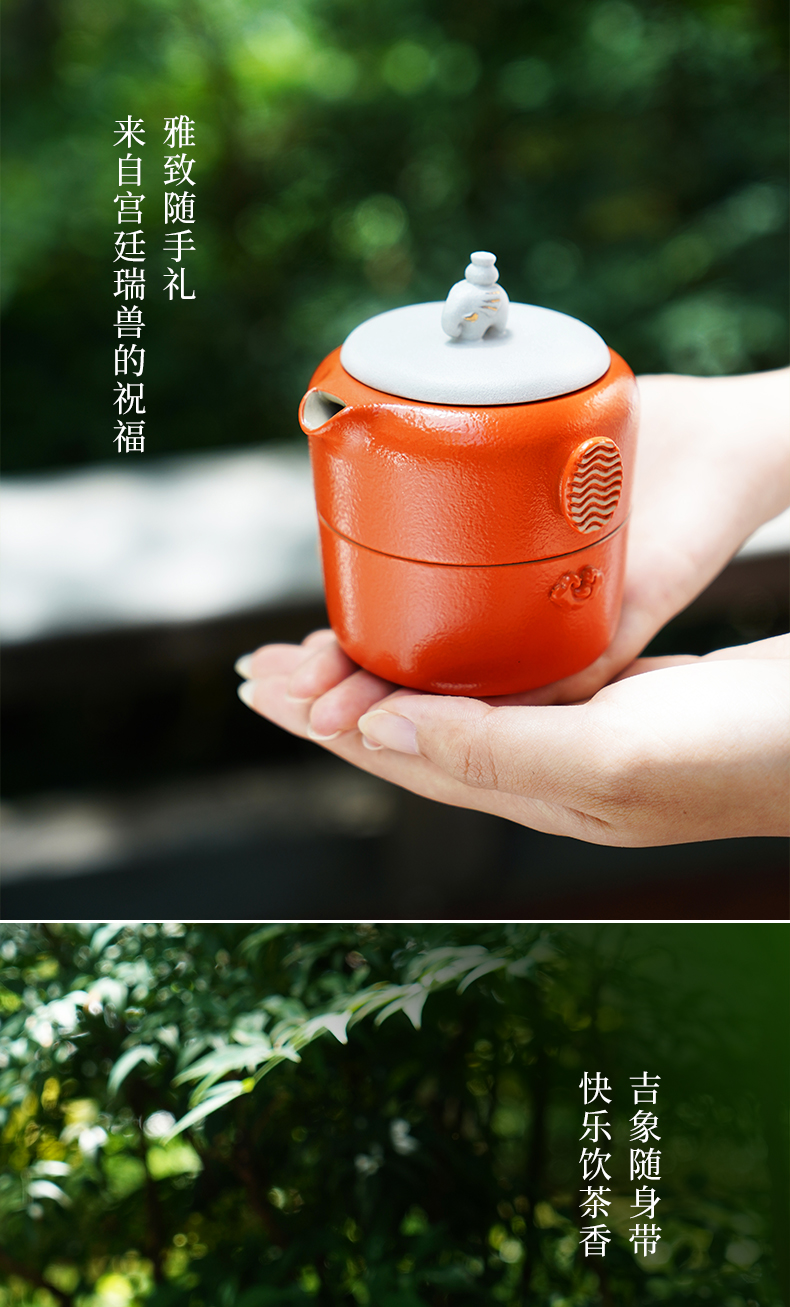 【特惠7折】陆宝联名旅行快客杯功夫茶具套装一人户外便携太平有象旅行茶具组宝石蓝