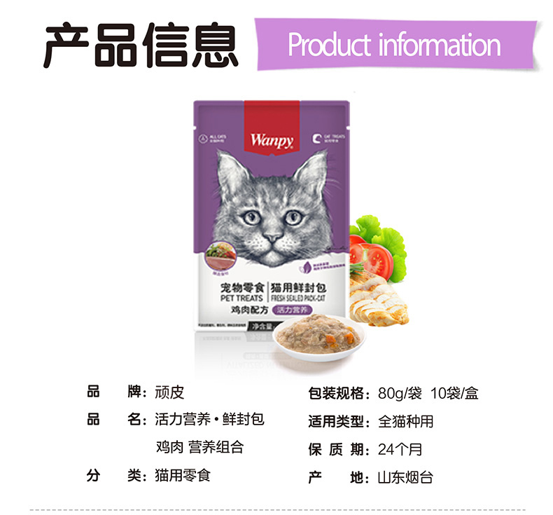 顽皮猫零食 鸡肉鲜封包80g猫条猫湿粮猫罐头 成猫咪宠物零食湿粮