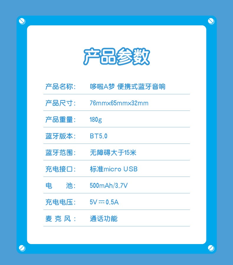 ROCK洛克 哆啦A梦 便携式蓝牙音响