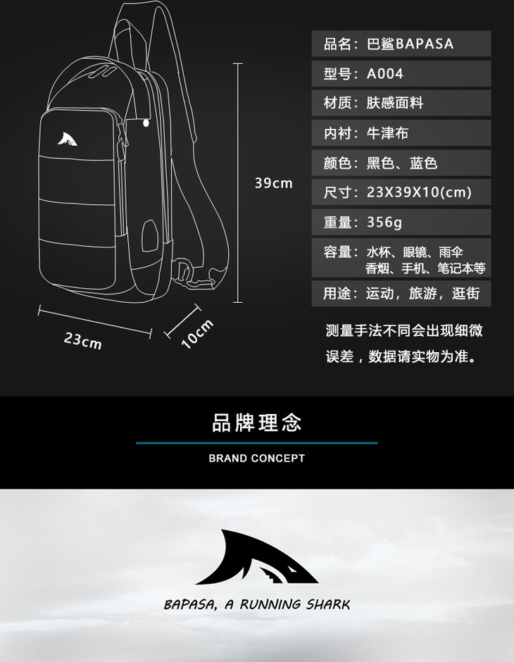 【潮男专属】巴鲨BAPASA 多功能休闲胸包【2010-3】