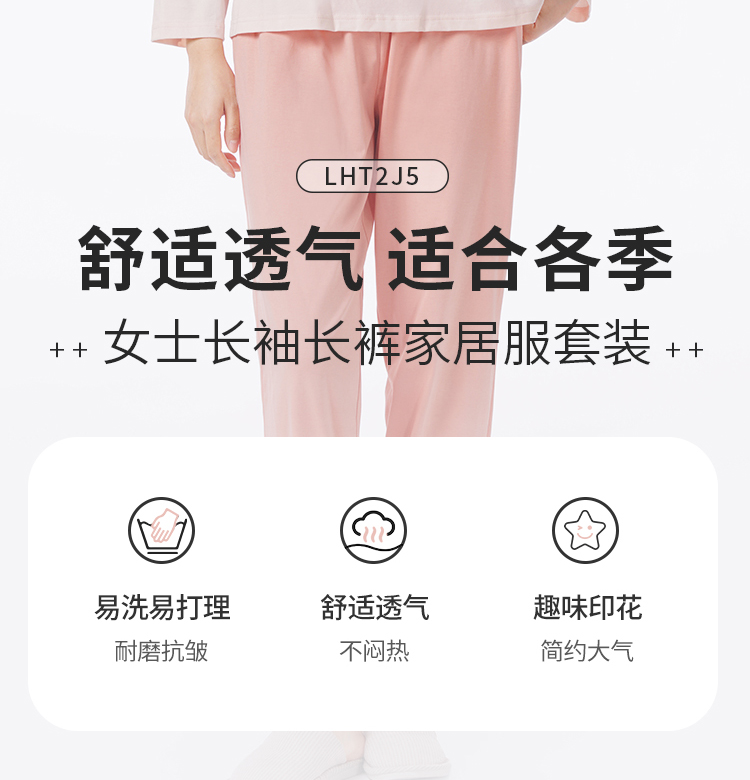 都市丽人睡衣好睡好眠长袖家居服单面无尘棉薄女士棉质套装LHT9C6