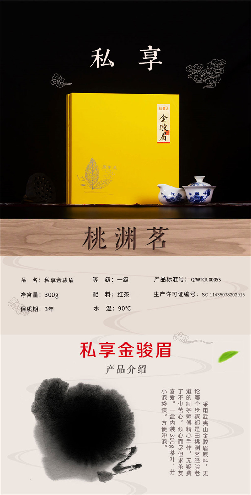 【原生态 原产地】桃渊茗 私享一级金骏眉 武夷红茶 300g/盒 礼盒装