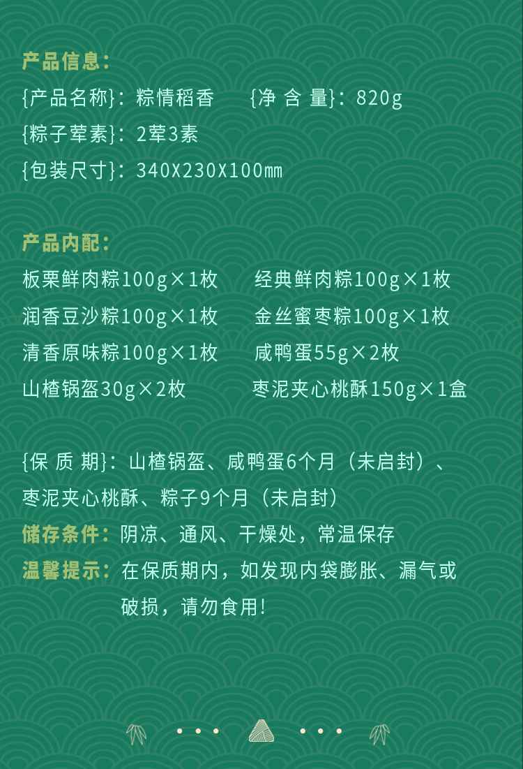 稻香村 粽情稻香礼盒(5粽2蛋+点心)- 820g【端午】LYX