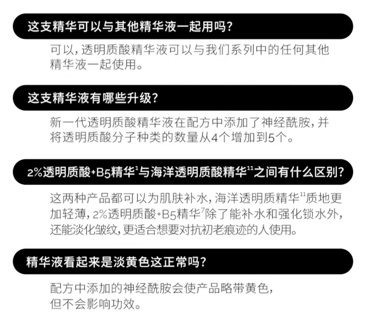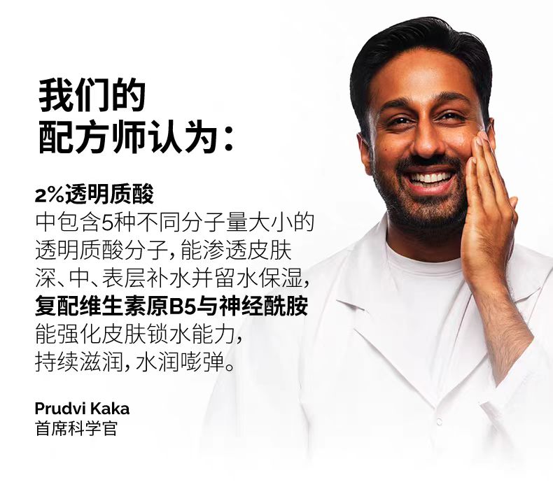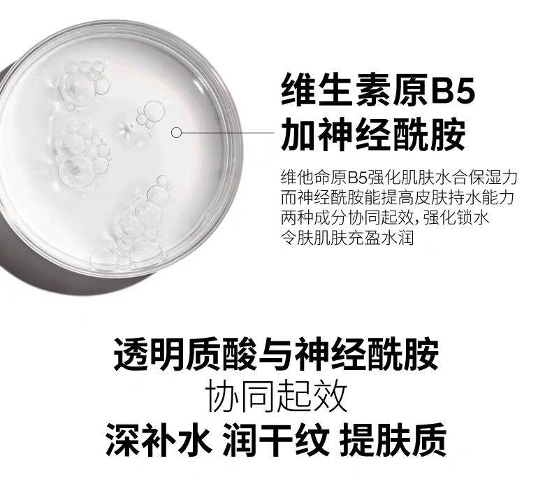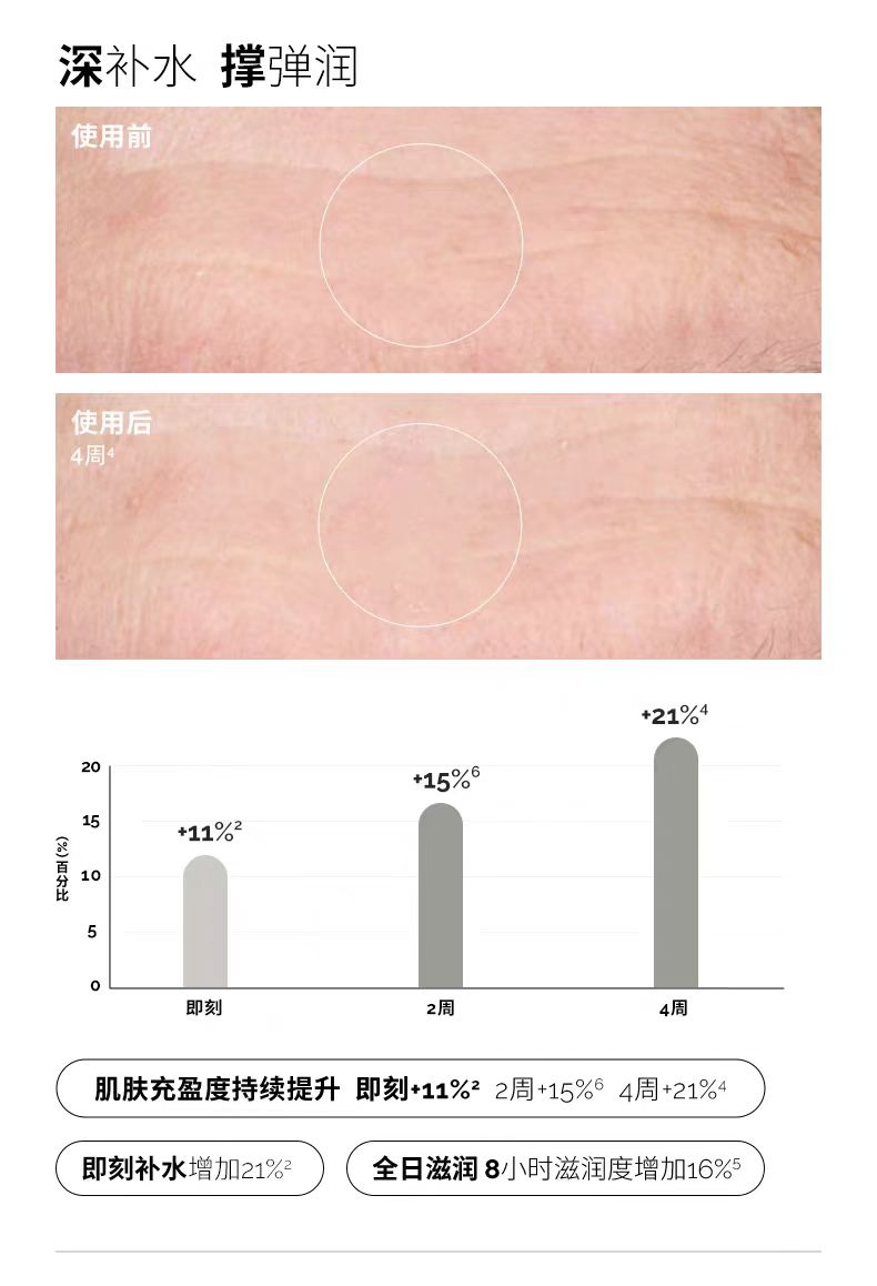 结合低、中和高分子量透明质酸分子和新型HA交联聚合物,支援多层皮肤的补水作用计对皱纹和纹理不规则的出现