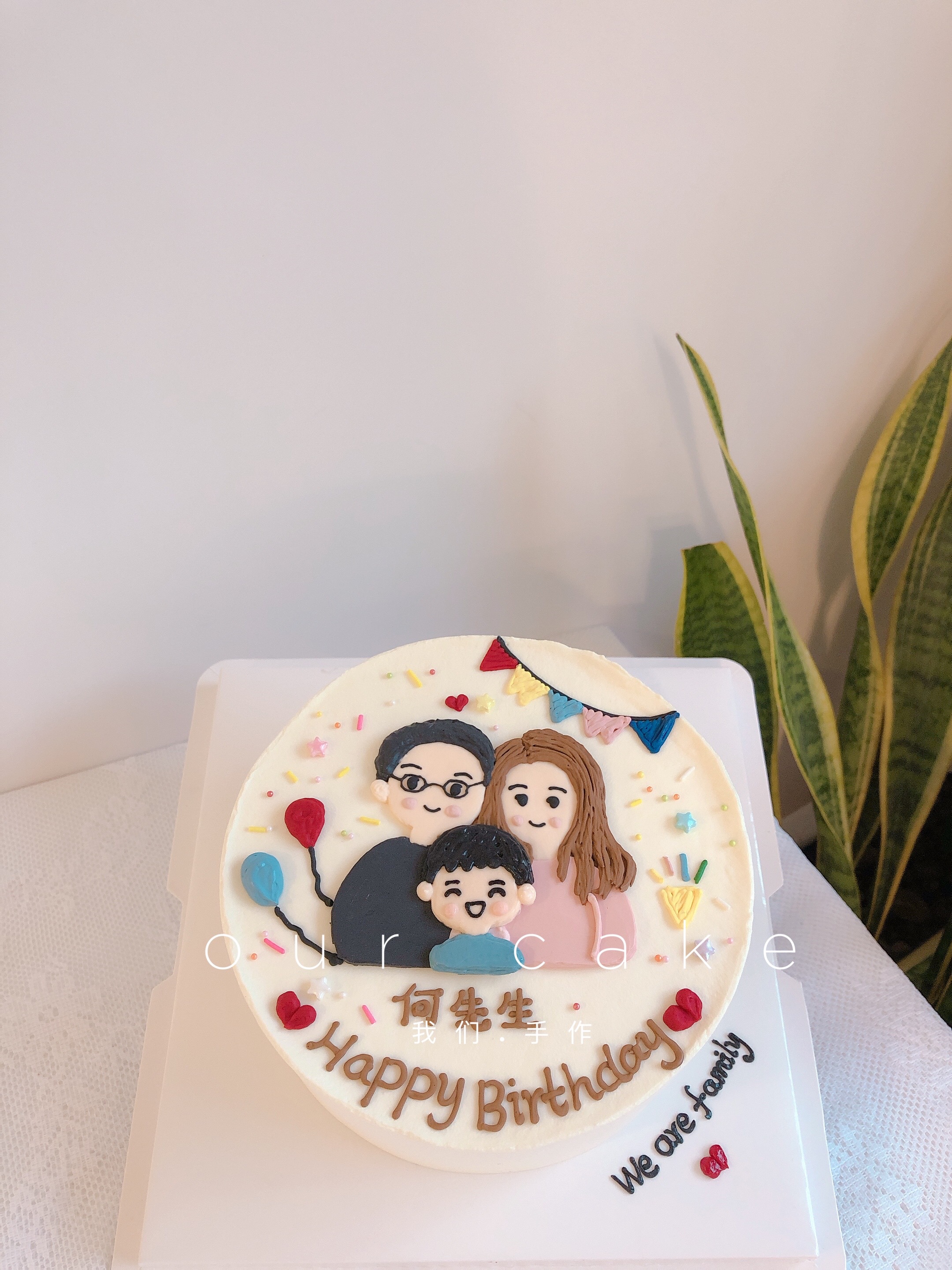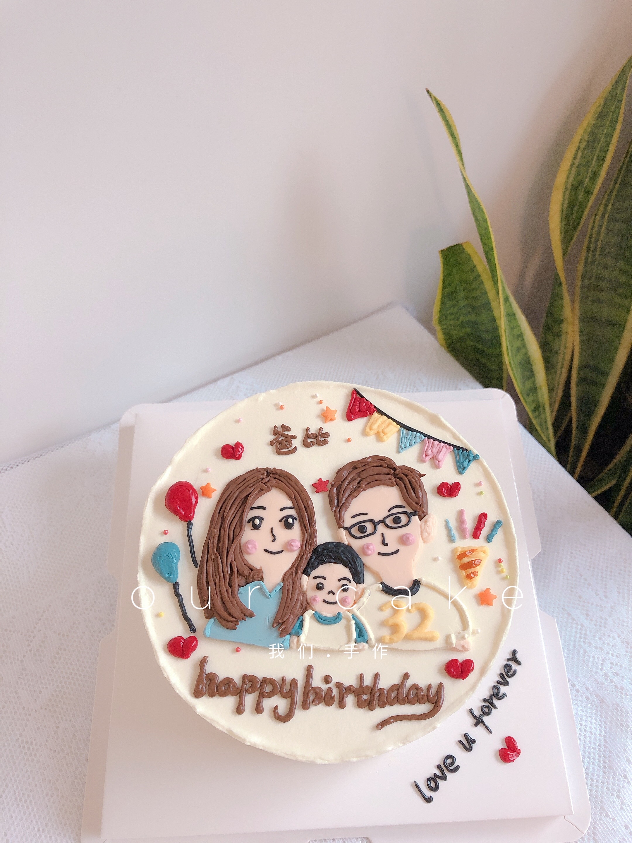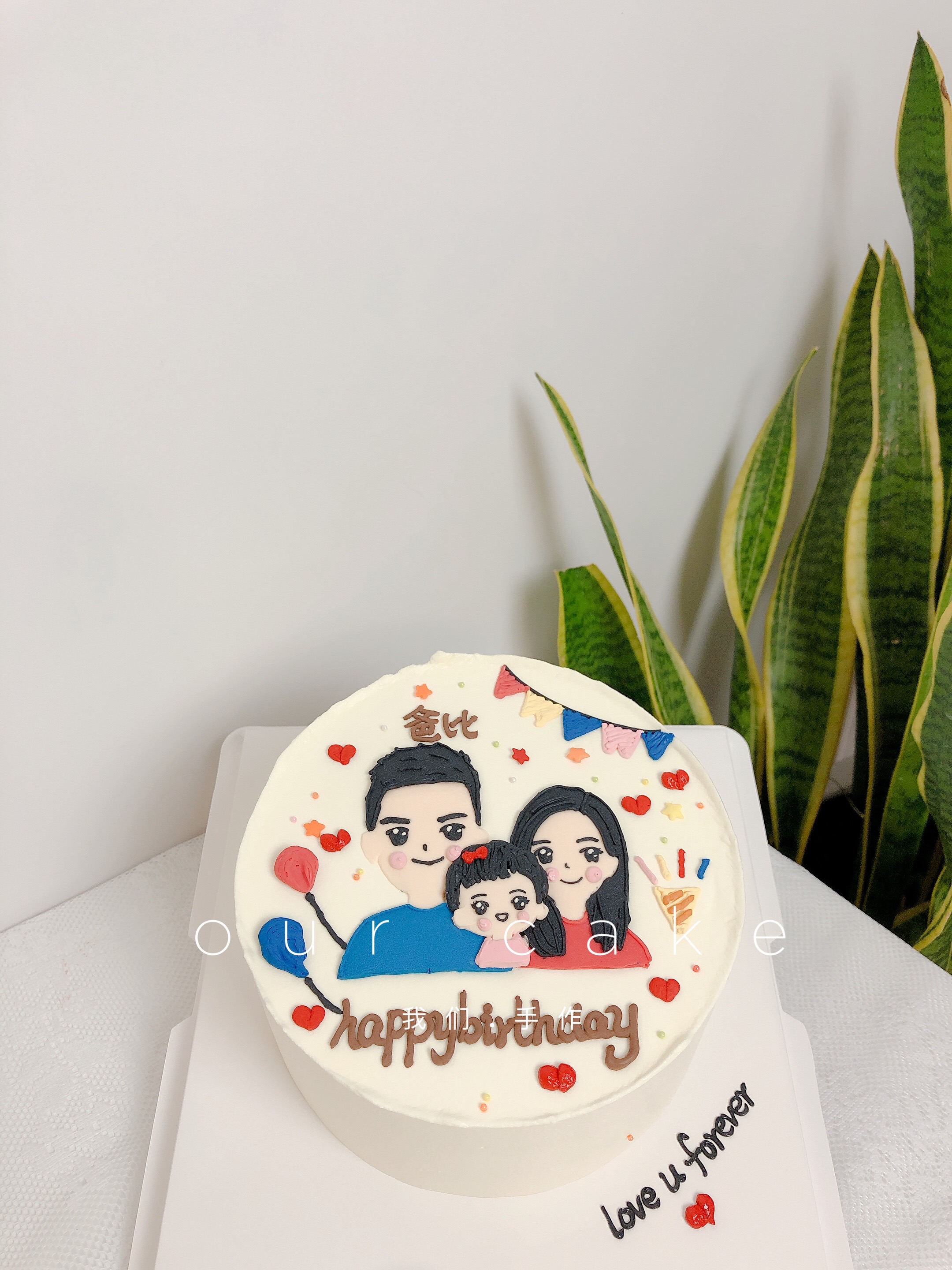 一家三口手绘蛋糕彩旗一家人手绘-低糖处理无添加