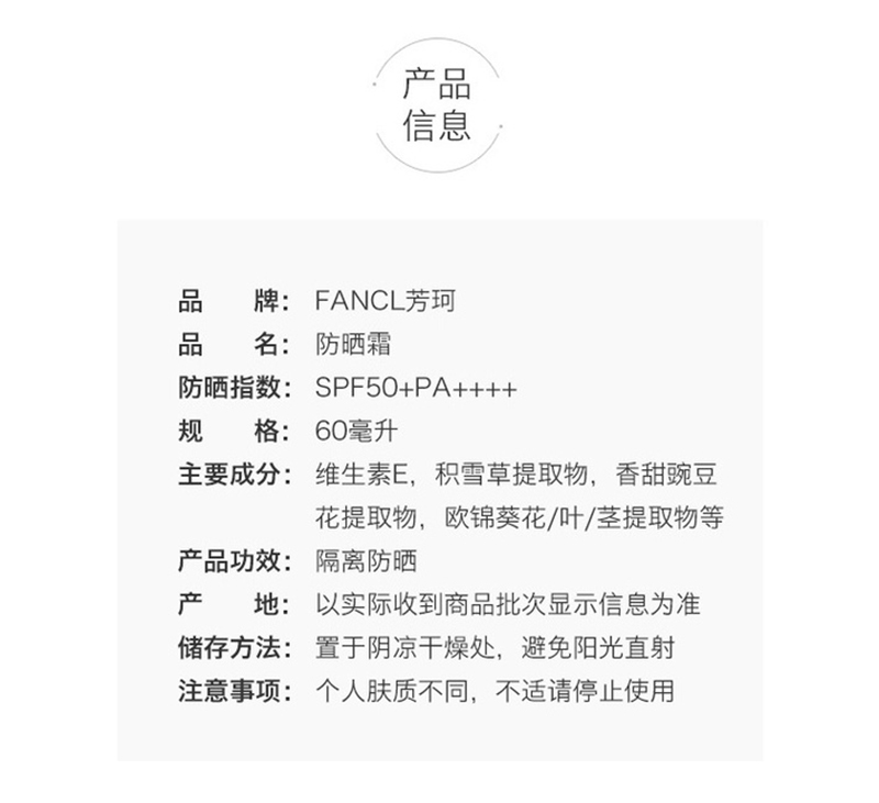 芳珂 [本土版] 无添加物理防晒霜SPF50+60ml