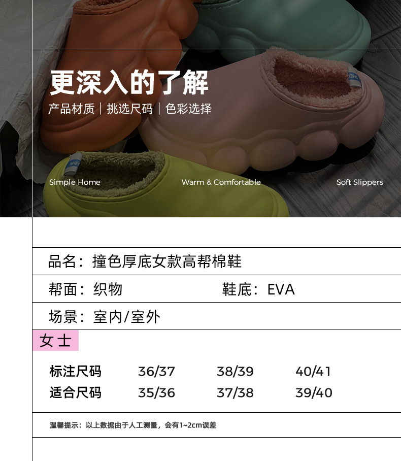 【特价29元】撞色厚底休闲女款高帮棉鞋保暖魔术贴外穿加绒【WG24130】
