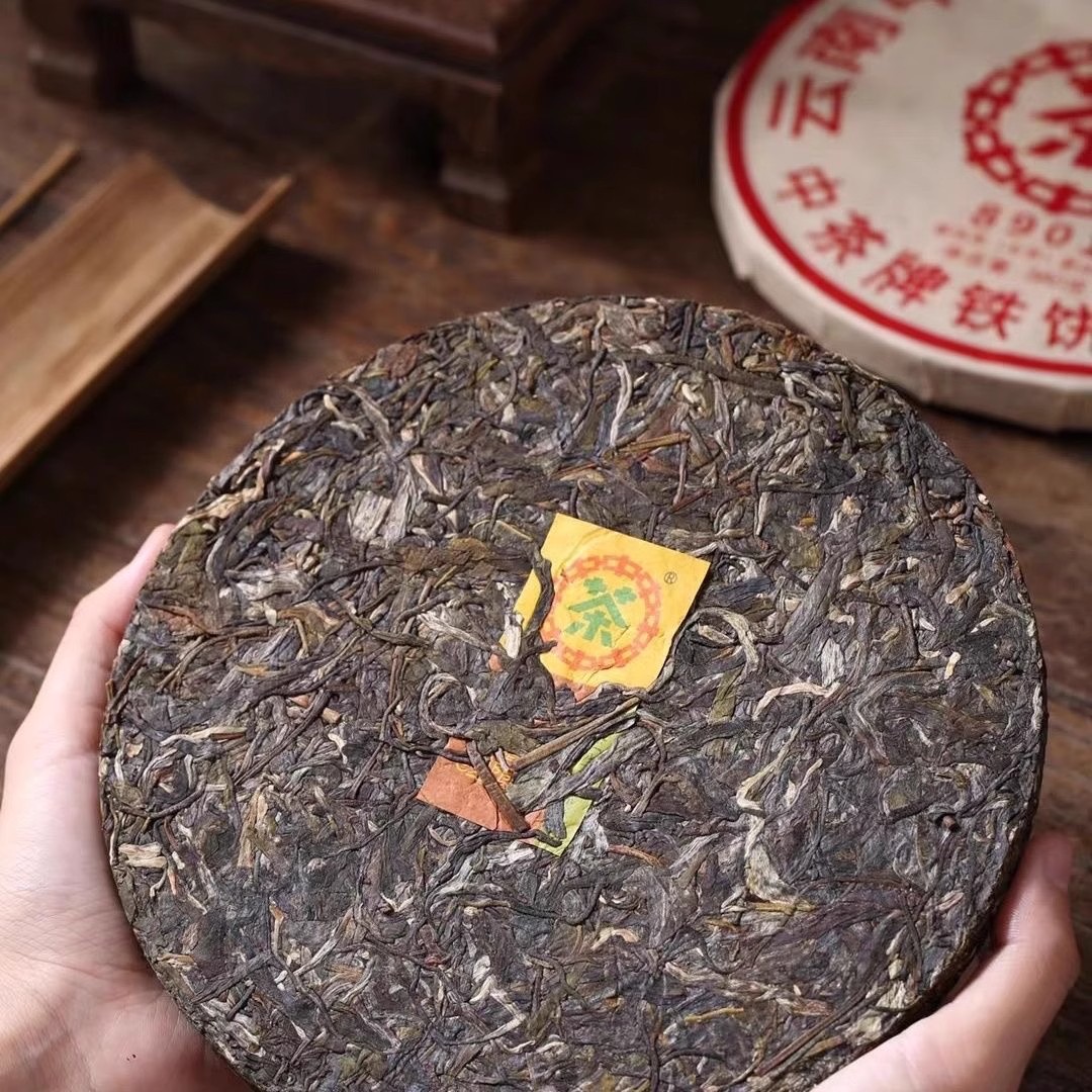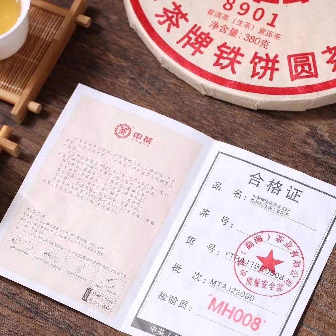 中粮-中茶2023年中茶8901 大红印铁饼普洱生茶 380g /云南干仓直发