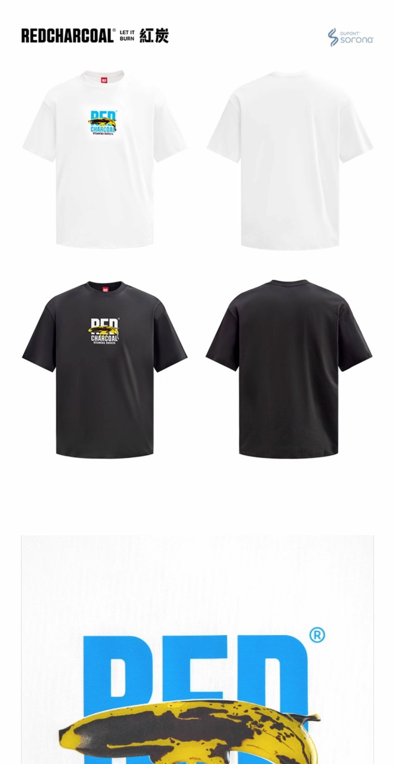 REDCHARCOAL 红炭米白色速干香蕉印花短袖T恤男夏季新款男士半袖