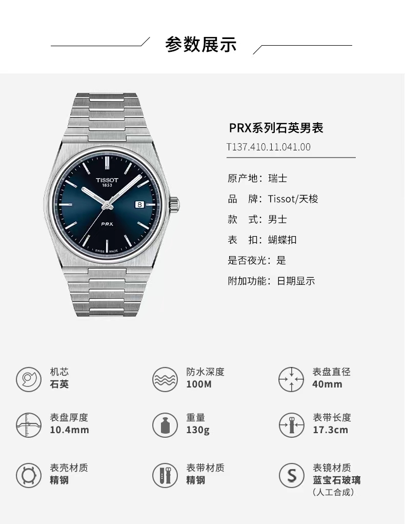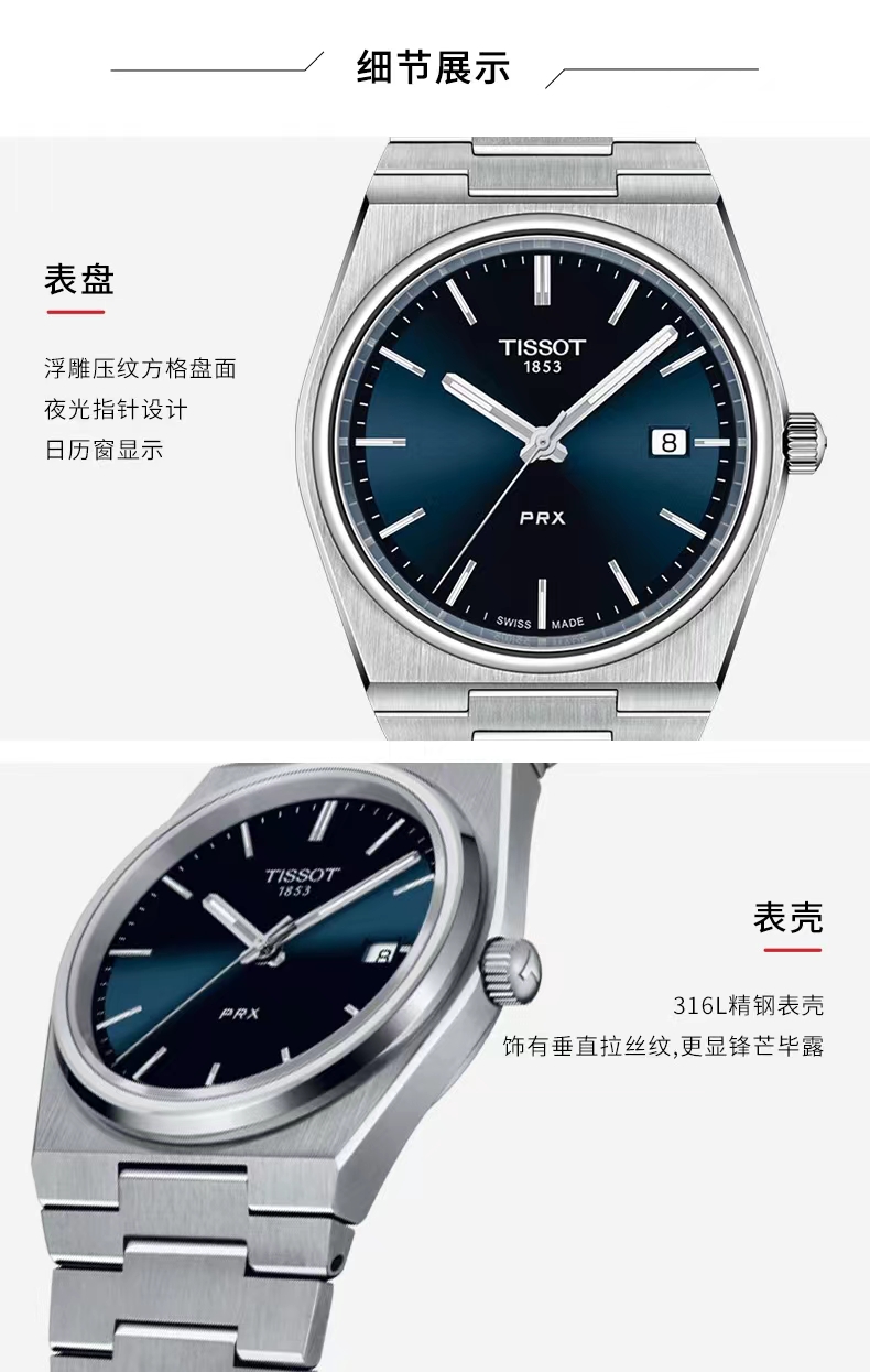 天梭(TISSOT)PRX超级玩家系列男士石英腕表