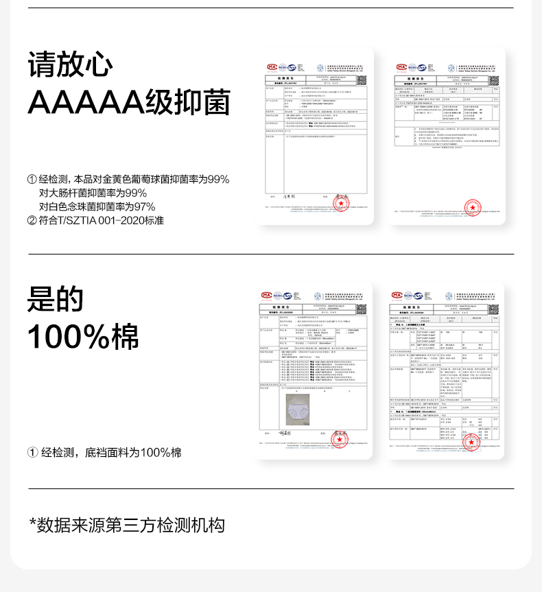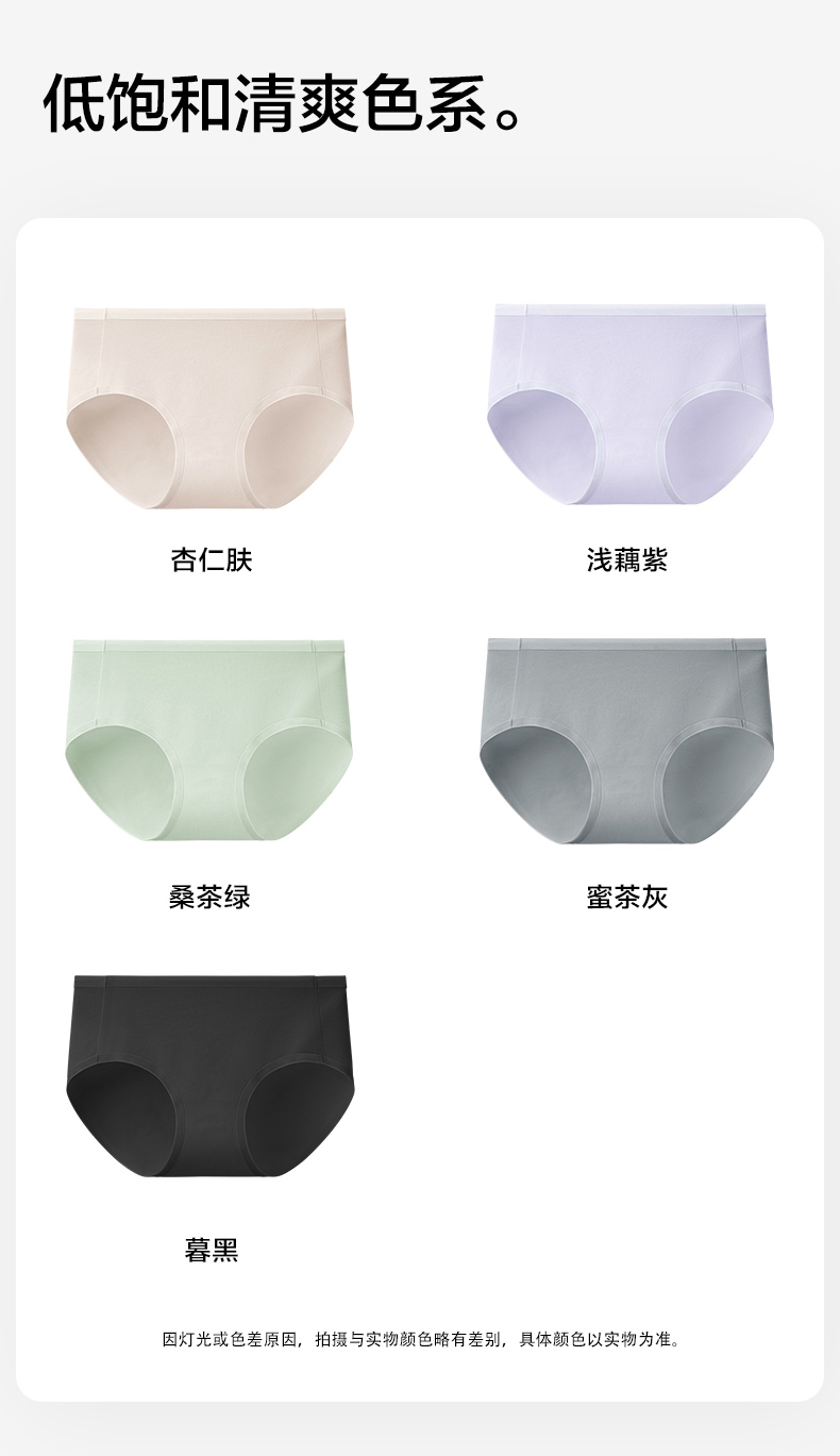 有棵树10A抗菌纯棉全棉裆中腰女士三角裤3条装-U3261