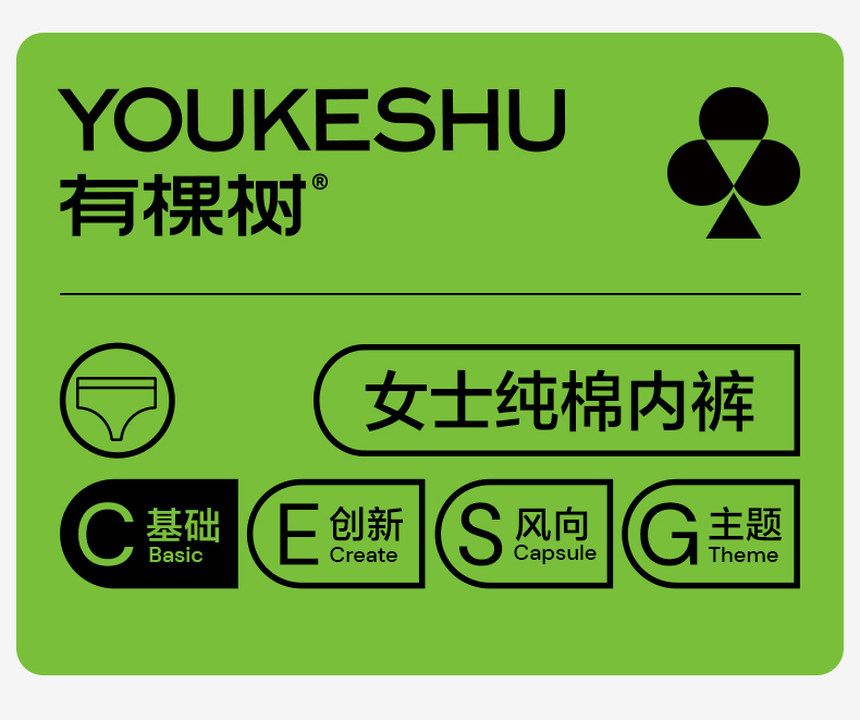 有棵树中腰无痕纯棉女士内裤3条装-U3060