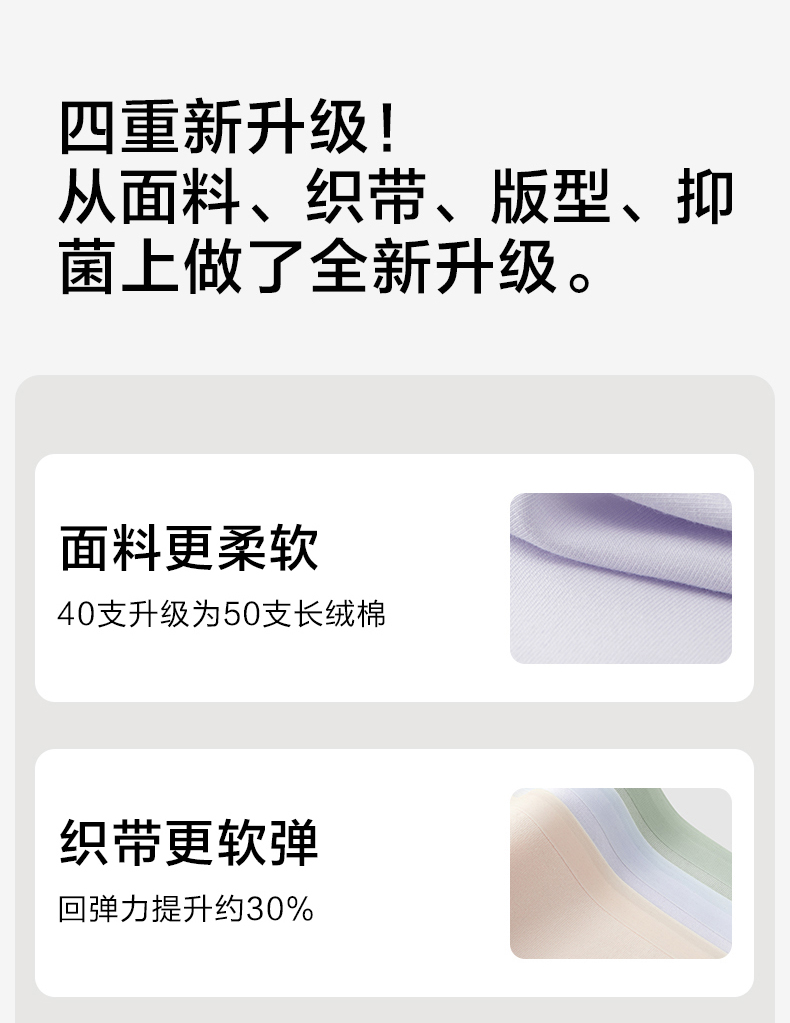 有棵树10A抗菌纯棉裆中腰女士三角内裤4条装-4009C
