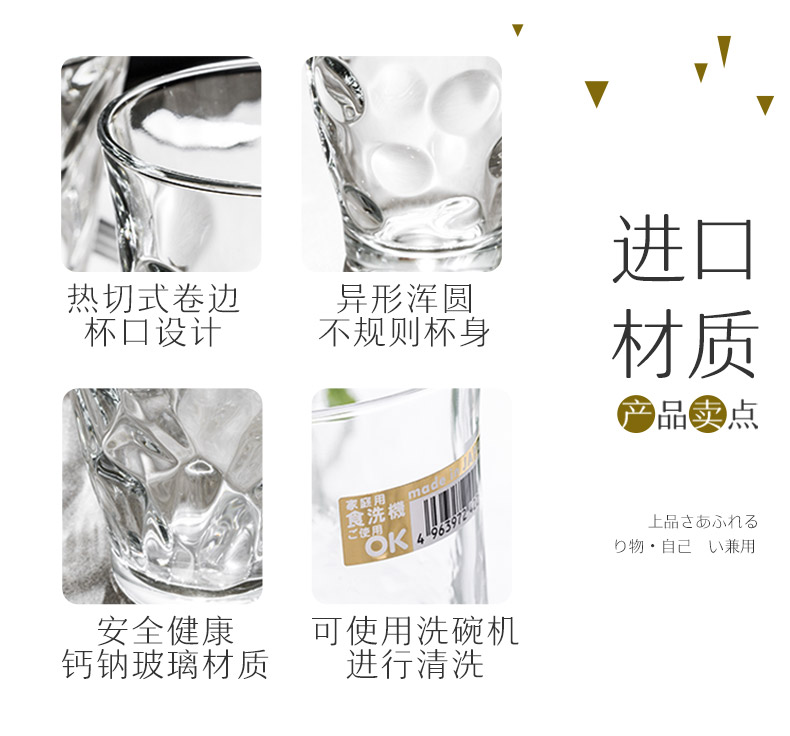 日本Aderia不规则水杯4件套装彩色葡萄水杯(4件套)