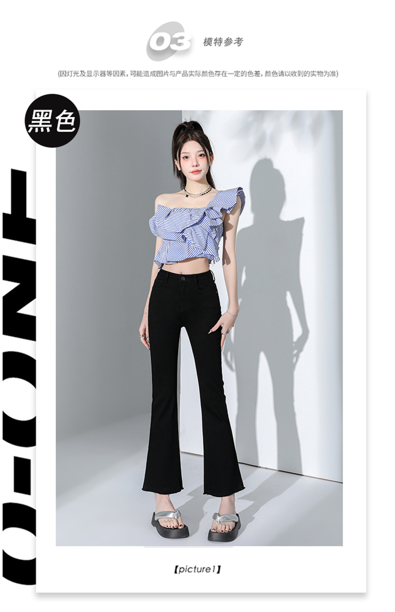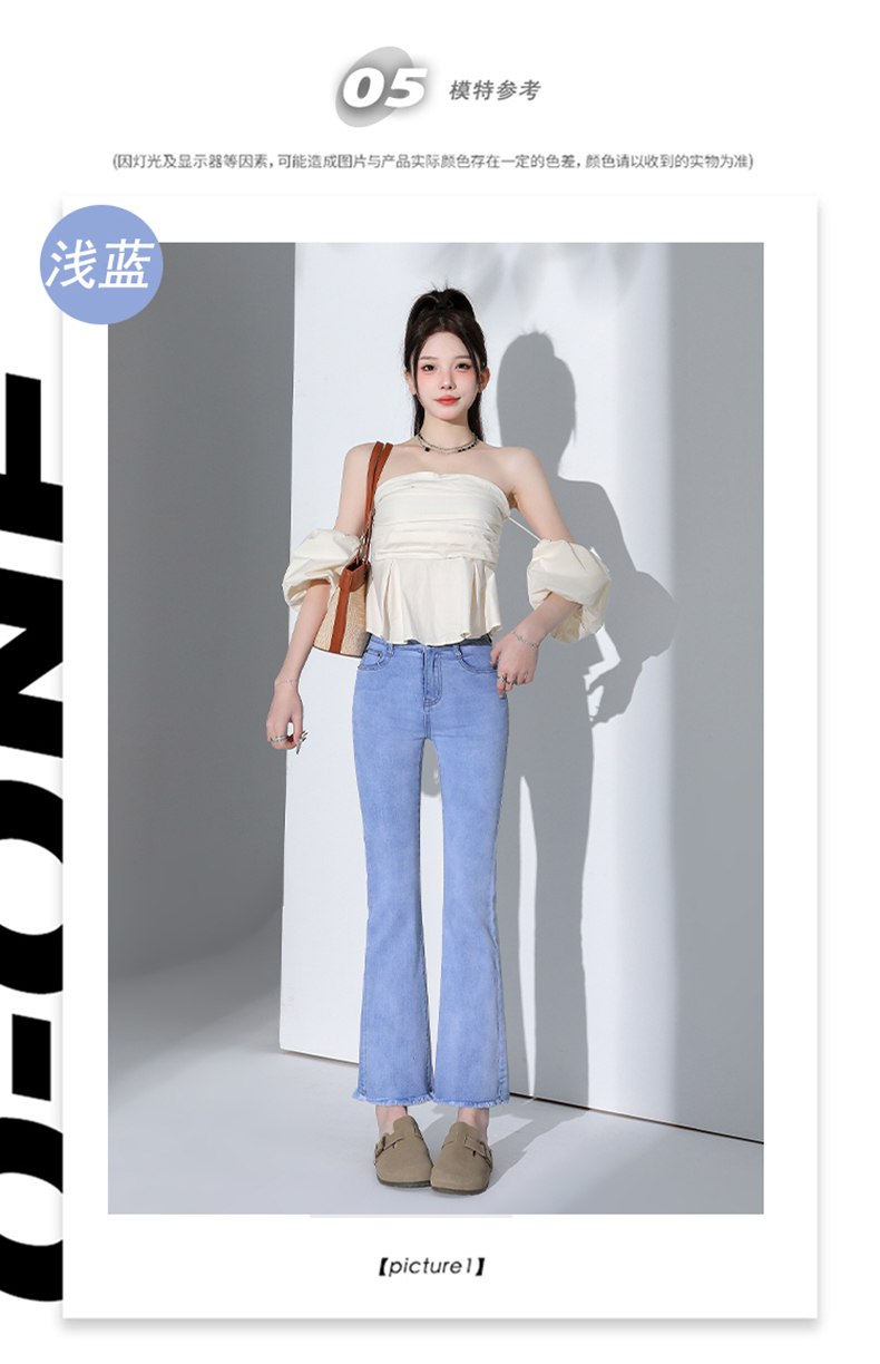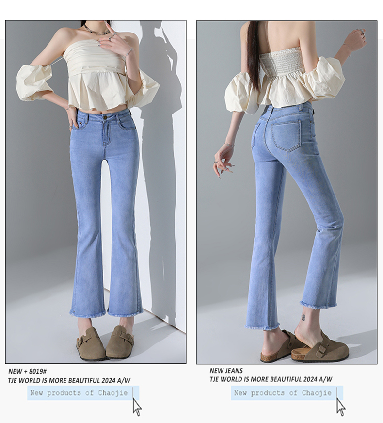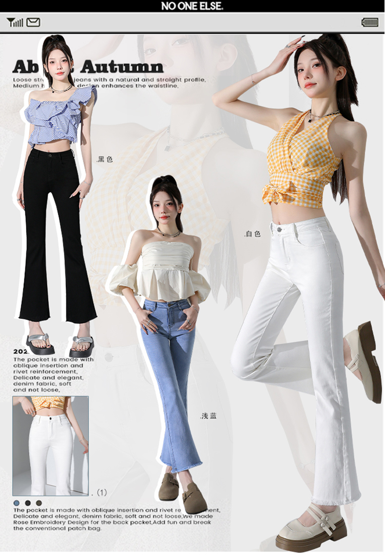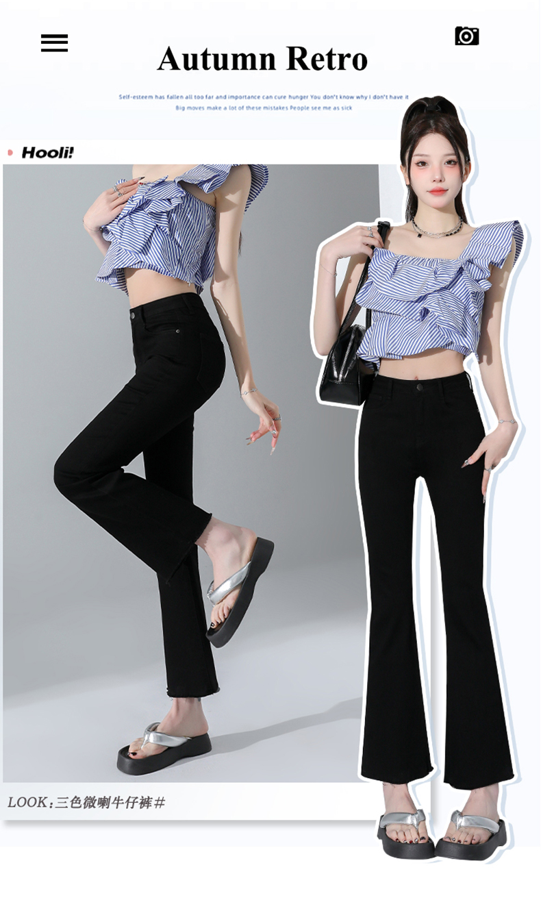 罗蒙四季款女士高腰微喇裤修身显瘦牛仔裤舒适百搭休闲通勤九分裤