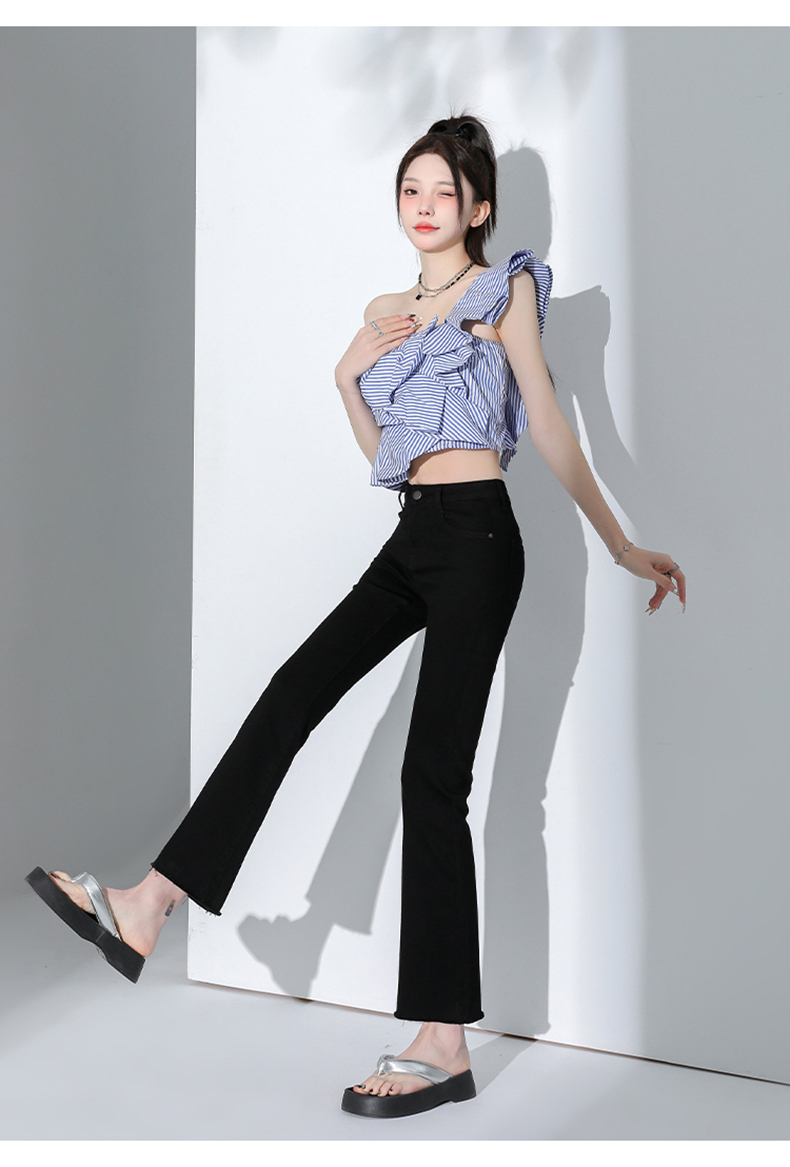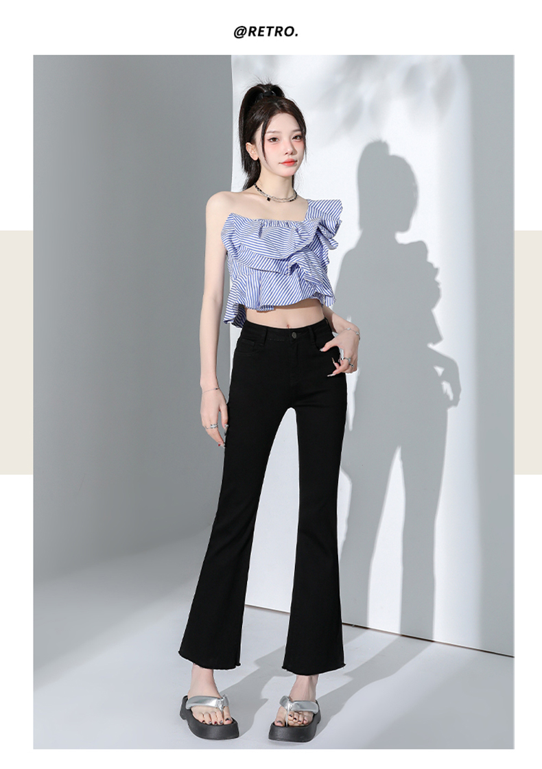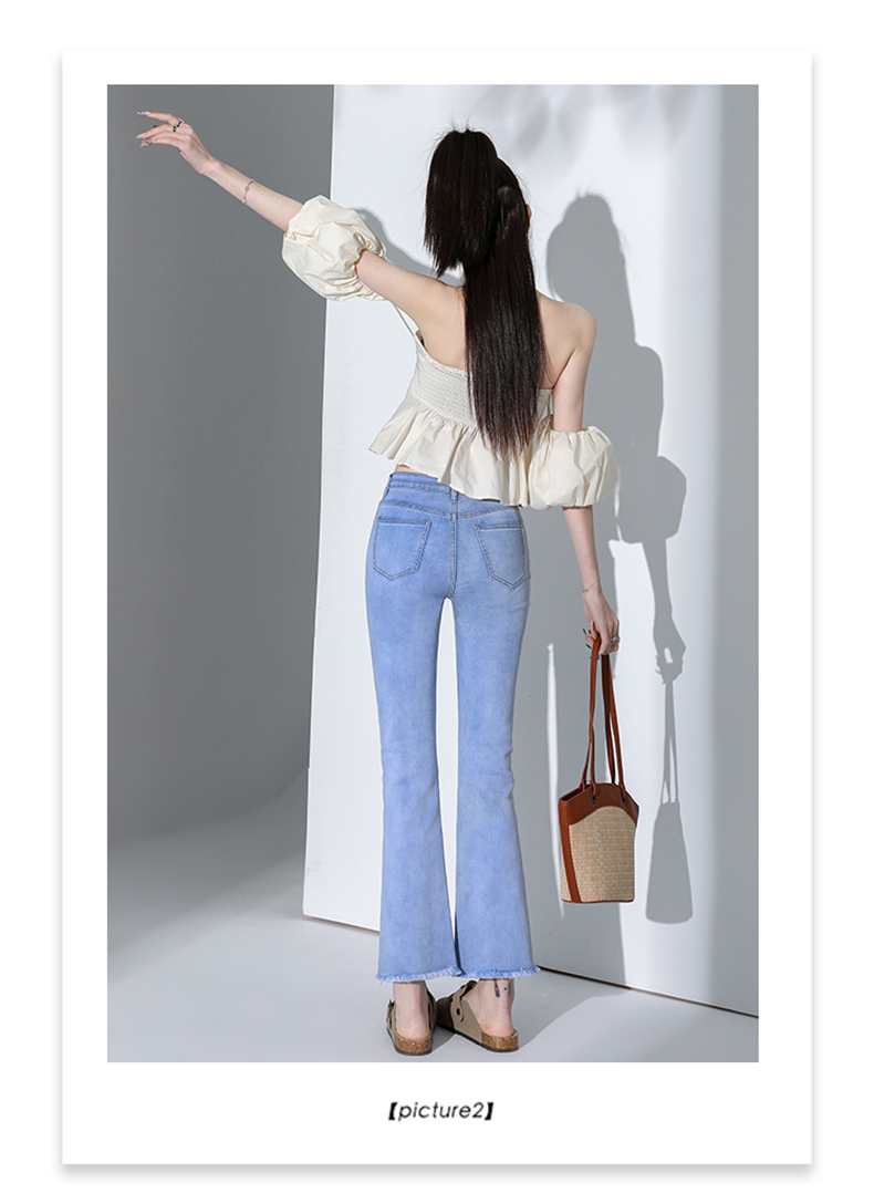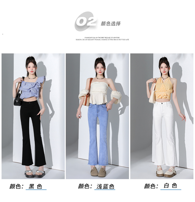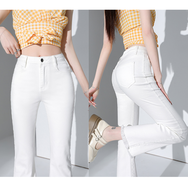 罗蒙四季款女士高腰微喇裤修身显瘦牛仔裤舒适百搭休闲通勤九分裤