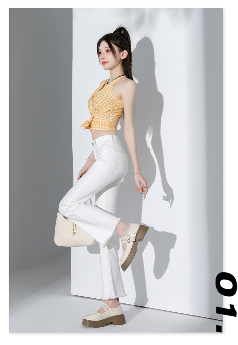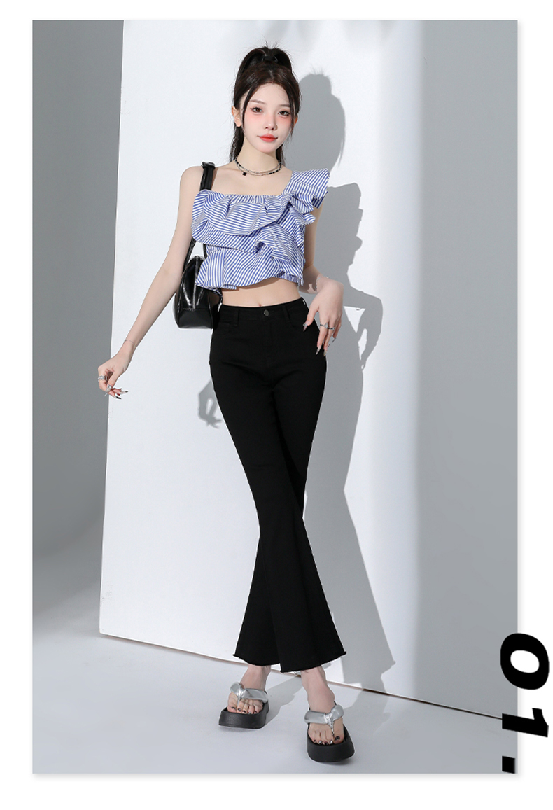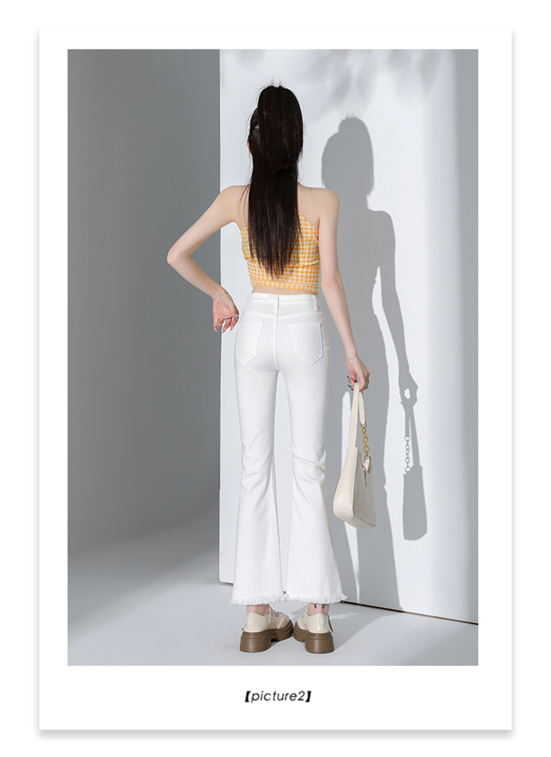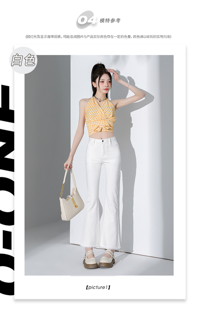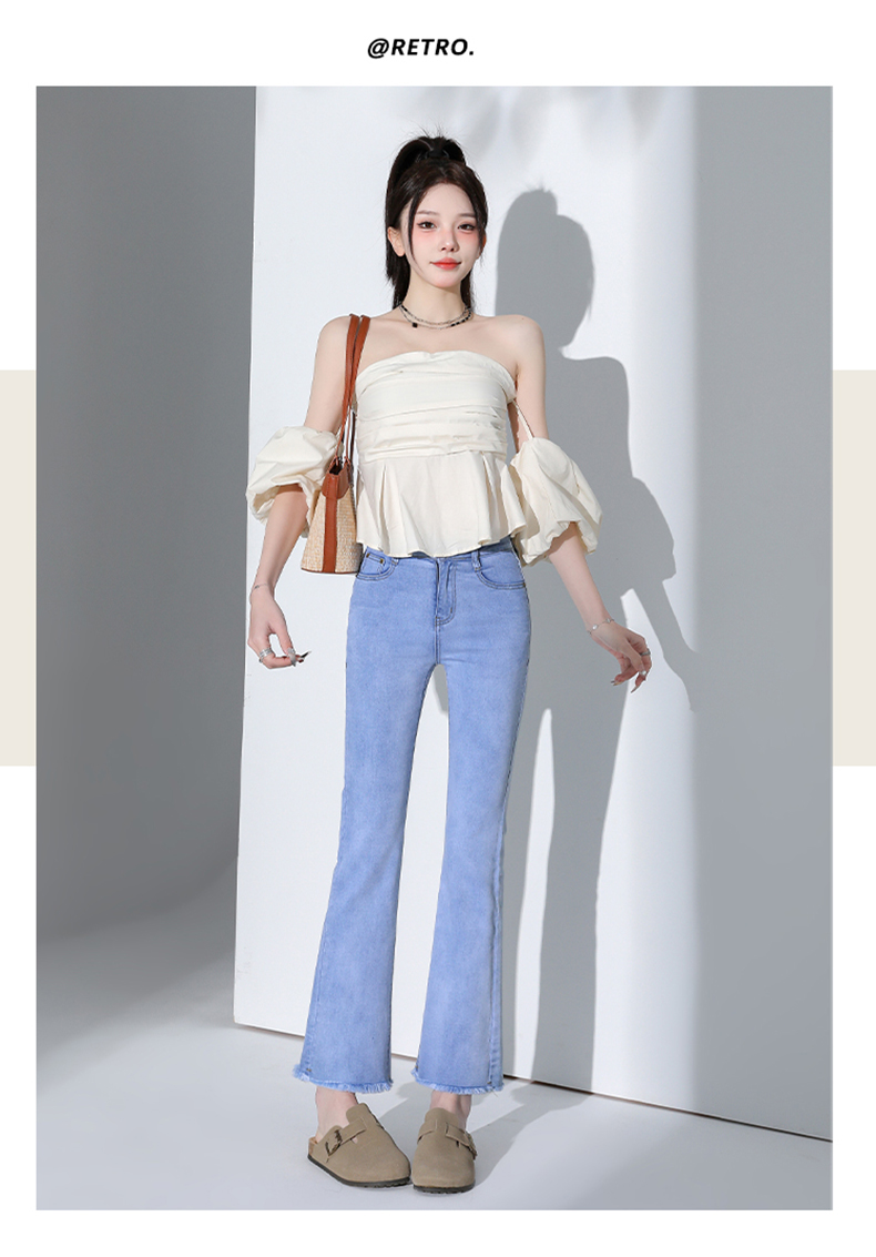 罗蒙四季款女士高腰微喇裤修身显瘦牛仔裤舒适百搭休闲通勤九分裤