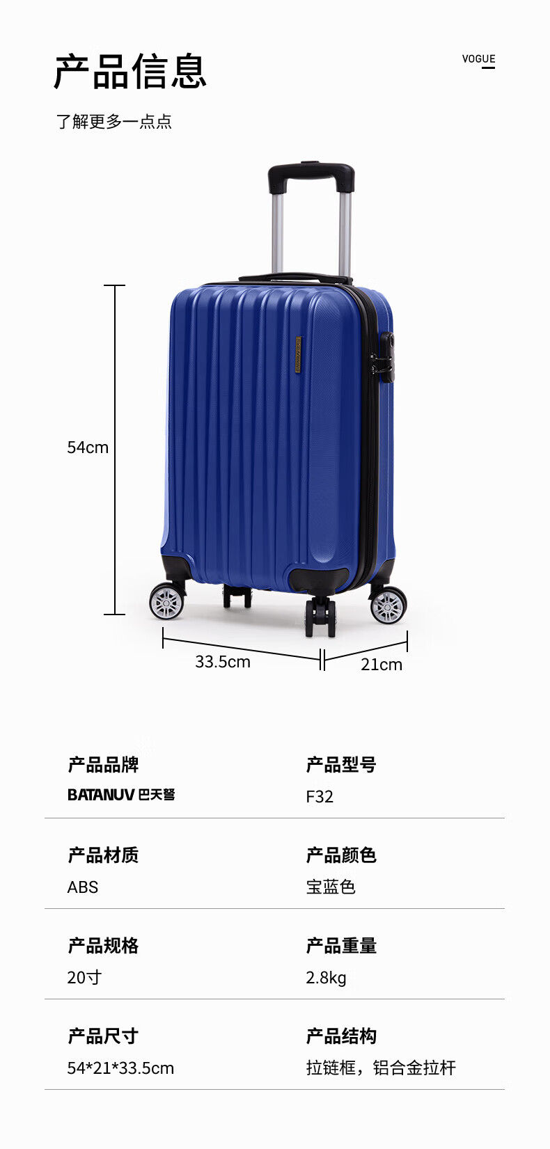 巴天弩(BATANUV)商务旅行拉杆箱20寸登机箱 F32 时尚能装 畅享随行