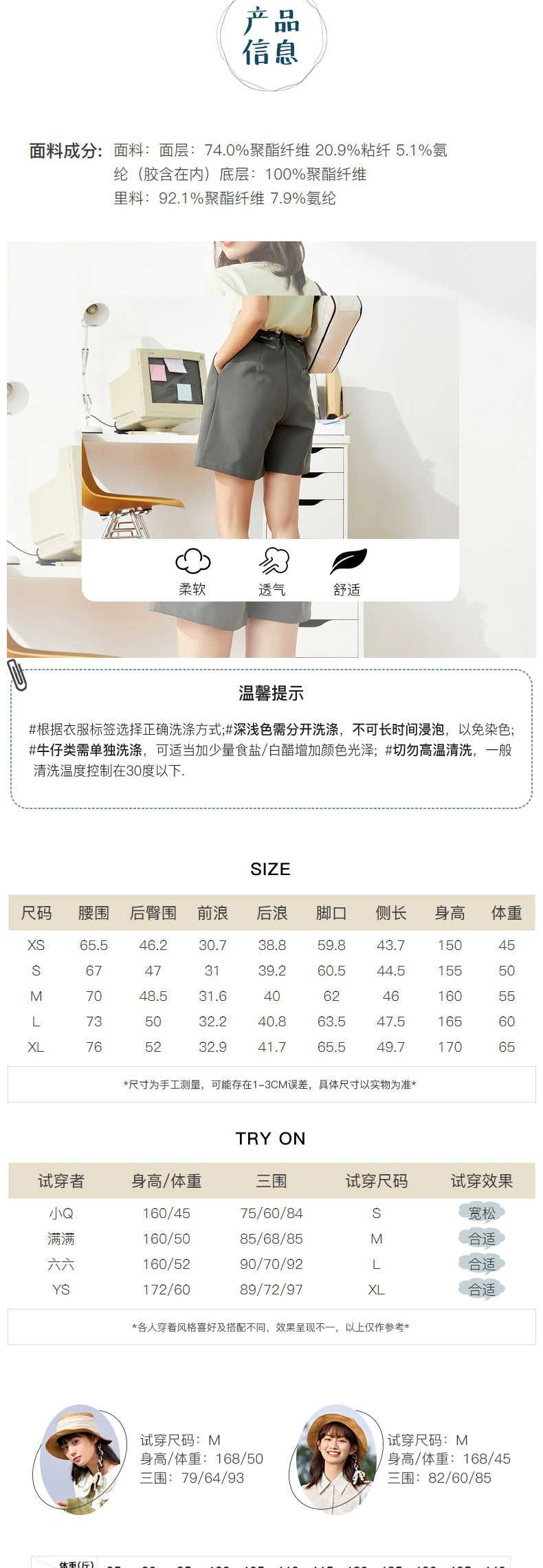 ZIHAN紫涵西装短裤女夏2022新款中裤五分裤04AS244